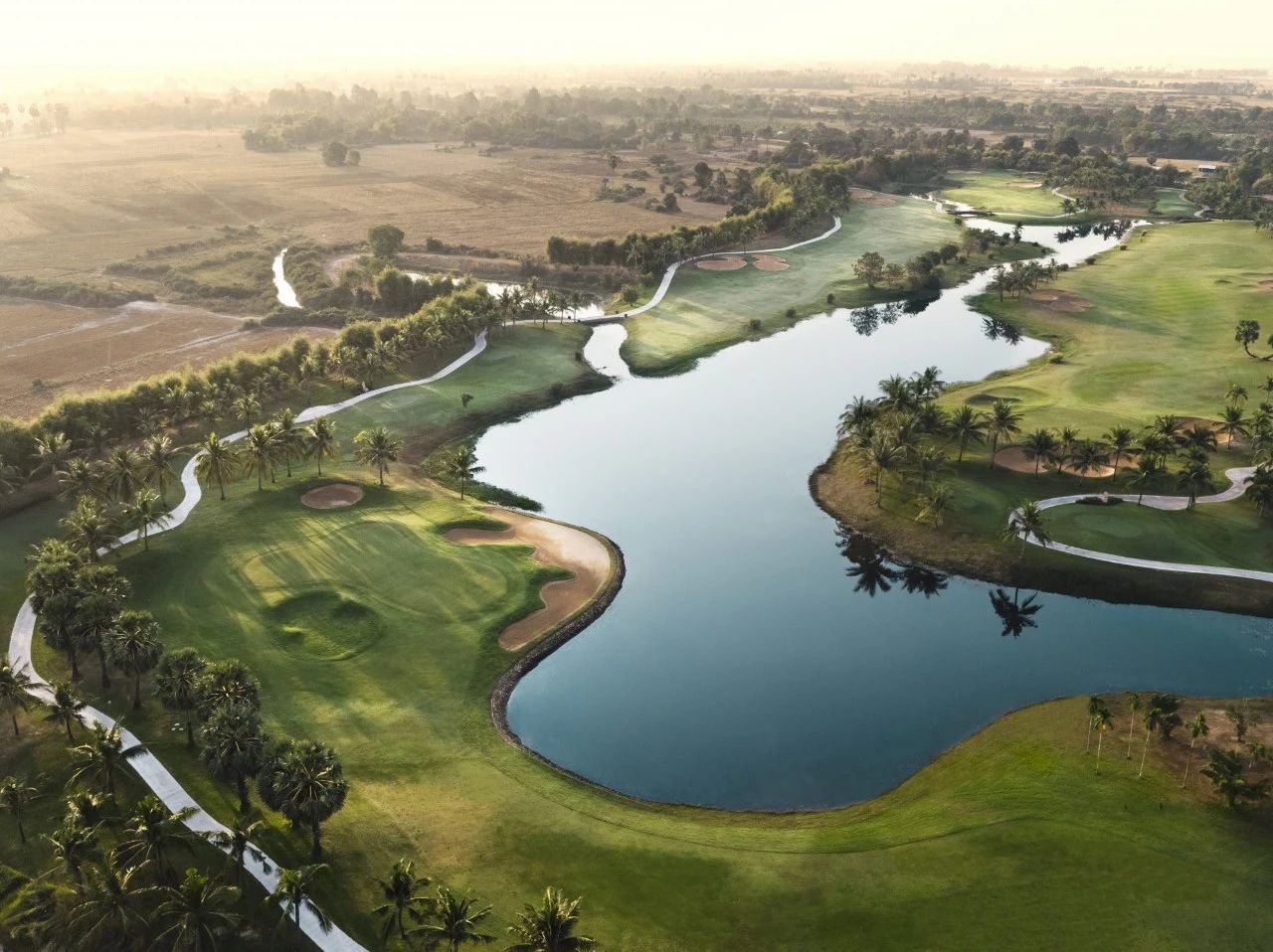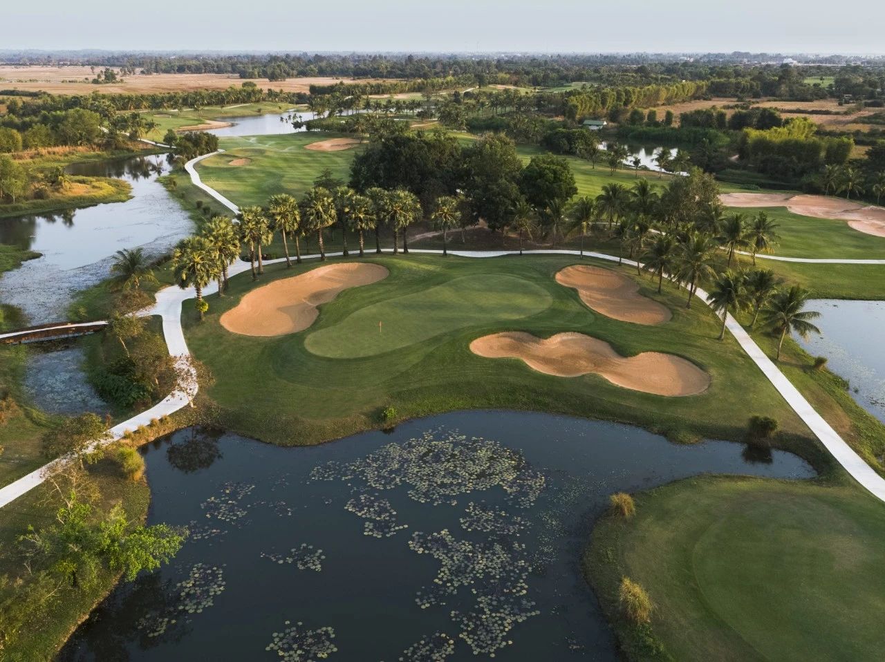 佛基拉球场的球道蜿蜒曲折,两旁绿树成荫,环绕着天然的湖泊和溪流,除了一个洞外,其余全部都有水,球场的终点是标志性的第 18 洞双水区,要求球员在最后一杆将球打入难以攻克的岛屿果岭。留意位于第 18 洞果岭和第 1 洞发球台之间的 11 世纪“Roluh”桥,它将俱乐部与柬埔寨古代高棉帝国连接起来。如果您想像参加柬埔寨公开赛一样在球场上打球,就像职业选手一样,现在您可以实现这个愿望,因为这两个九洞最近已作为翻新项目的一部分进行了更换。