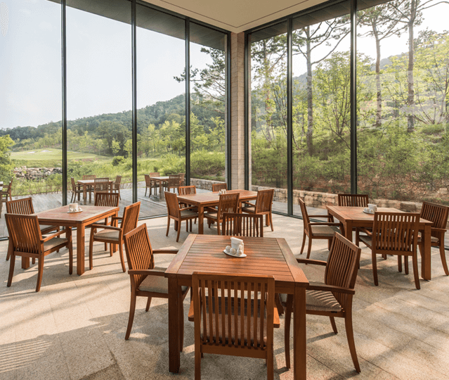 高耸的山脊和无尽的深谷。一条溪流从未被触及的森林沿着球场延伸,最终到达一个大池塘。动态布置的球场它反映了风景并让人体验大自然的多样化元素。包括精美的更衣室、蒸汽桑拿浴室和水疗中心,供客人在球场上打球之前和之后都可以放松一下。水疗和桑拿