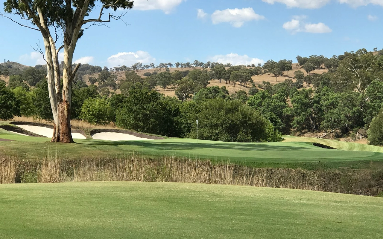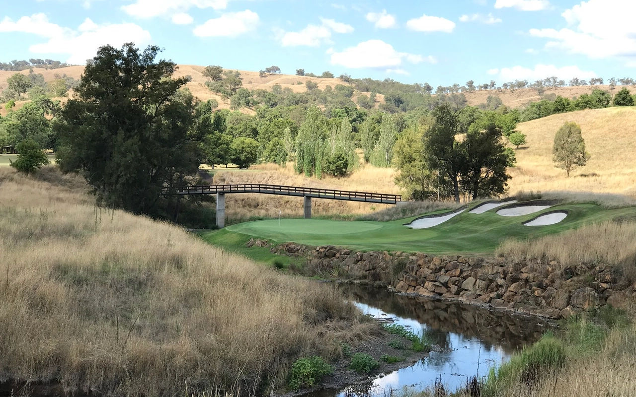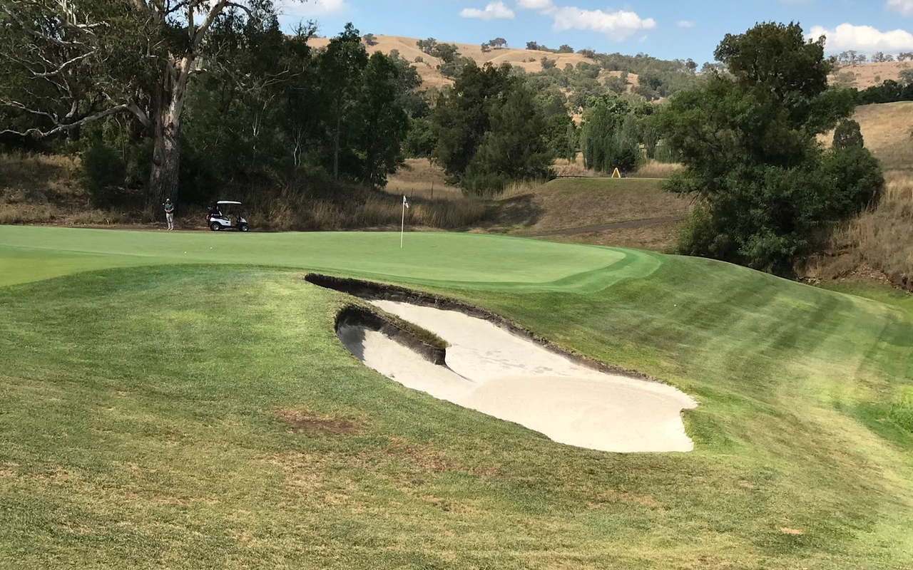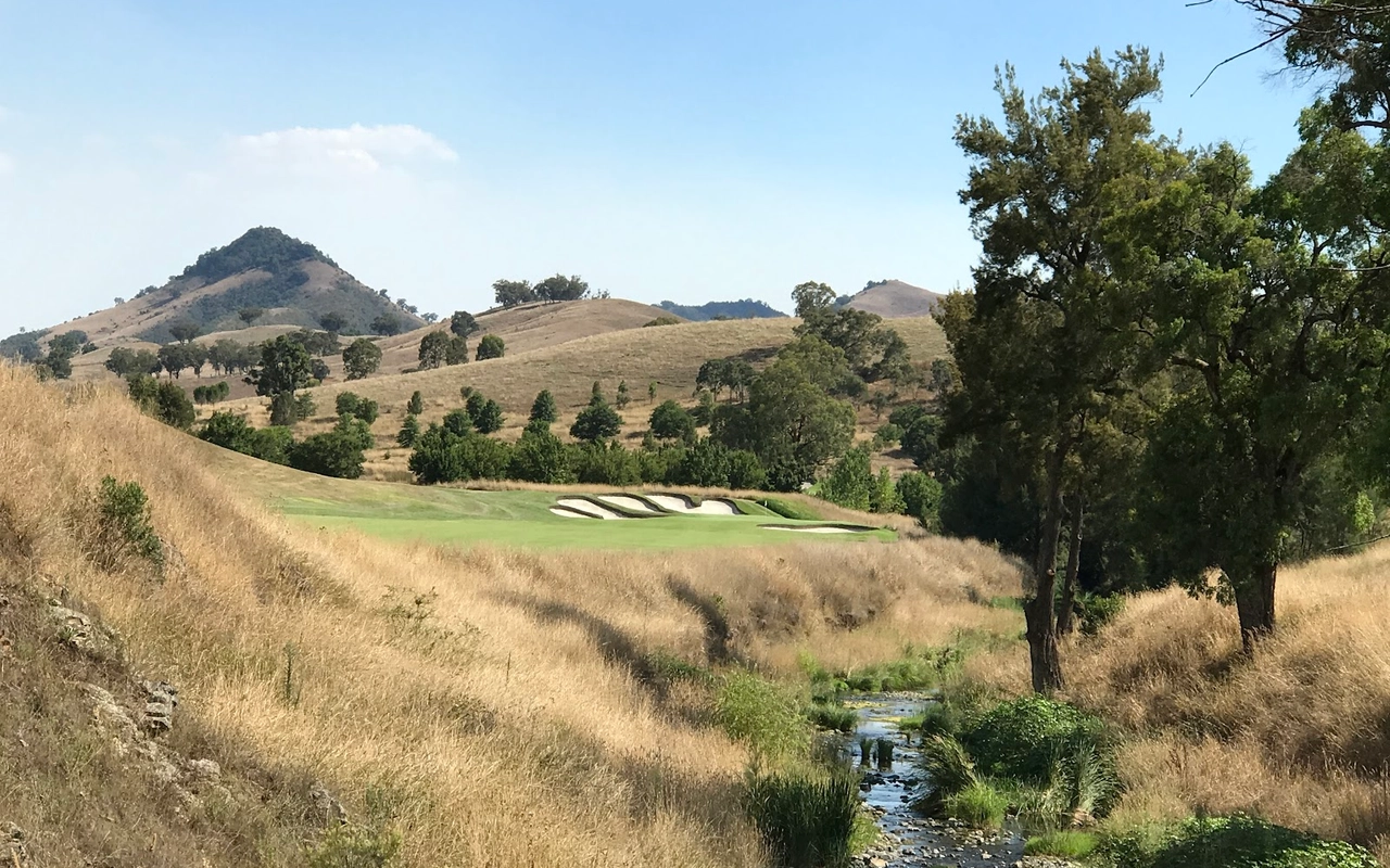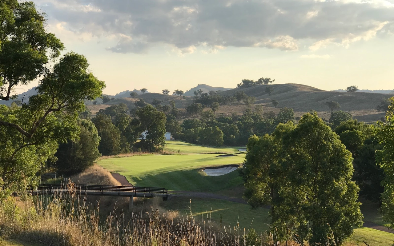 艾勒斯顿 (Ellerston) 坐落于新南威尔士州上猎人谷 (Upper Hunter Valley) 僻静的高地,是著名商人 Kerry Packer 庄园内的一座极其私密的 18 洞高尔夫球场。埃勒斯顿一直被评为世界上最好的高尔夫球场之一。美丽的埃勒斯顿庄园坐落在新南威尔士州上猎人谷僻静的高地,是名副其实的香格里拉,专供澳大利亚最富有的家庭之一独享。对于马术爱好者来说,这座庄园长期以来一直是一个地标,因为在其天然山谷和起伏的山丘中,有原始的马球场,被公认为世界上最好的马球场之一。1999 年,已故的克里·帕克 (Kerry Packer) 向格雷格·诺曼 (Greg Norman) 求婚,并指示他的公司为他建造澳大利亚最坚固、最壮观的内陆高尔夫球场,因此决定在该地产上增加高尔夫球场。由于预算不太可能成为问题,设计师诺曼·哈里森和鲍勃·哈里森面临的关键问题就变成了选择最佳地点。该团队获得全权使用帕克占地 70,000 英亩保护区的任何部分进行比赛。经过几天的搜寻,人们发现了湍急的佩吉斯溪,并立即认为这是建造帕克先生想要的戏剧性球场的完美地点。这条小溪是该布局的中心特征,并包含不少于九个球洞,其余的大部分球洞建在远离障碍区的地势较高的地区。由于对难度级别的狂热,客户决心为世界上最好的玩家提供终极挑战,这使得设计师比平时承担了更多的风险。其中一个场地,即第六球场,实际上在球场开放后不久就被大雨冲毁了。考虑到该地区容易发生洪水,这并非完全出乎意料,因此,为了减轻不断重建果岭的担忧和费用,建议采用抬高的替代方案。然而,帕克毫不犹豫地下令在原地重建果岭,并指示他的设计团队在每次果岭被冲走时都这样做。除了体验其独特性之外,艾勒斯顿的亮点还在于要求较高的长洞,这是一场无情的驾驶考验。每个球都需要在球道的优质部分放置一个长炸弹,以确保线路畅通无阻地进入果岭。其中八个四杆洞的长度在 430 至 460 码之间,但由于使用对比障碍和不断的海拔变化,它们作为一个整体非常多样化。7号洞和 8 号洞是精彩的例证,下坡的 7 号洞比 8号洞长 50 码,但通常打得更短。发球台建在山坡上,令人生畏,开球沿着小溪向 200 码外的球道打。果岭环境的多样性,无论是戏剧性地推向障碍区,还是设置在天然沟壑或小山脊上,都非常引人注目。大多数目标都由令人印象深刻的诺曼/哈里森掩体形状构成,尽管像第 5号、第 10号和第 16号这样的无掩体目标也很有吸引力。翦草推杆面专为高速而设计,面积巨大且毫无瑕疵。同样,球道的呈现通常是无可挑剔的。水牛短草为纯粹的沙发打球走廊提供了鲜明的颜色和纹理。