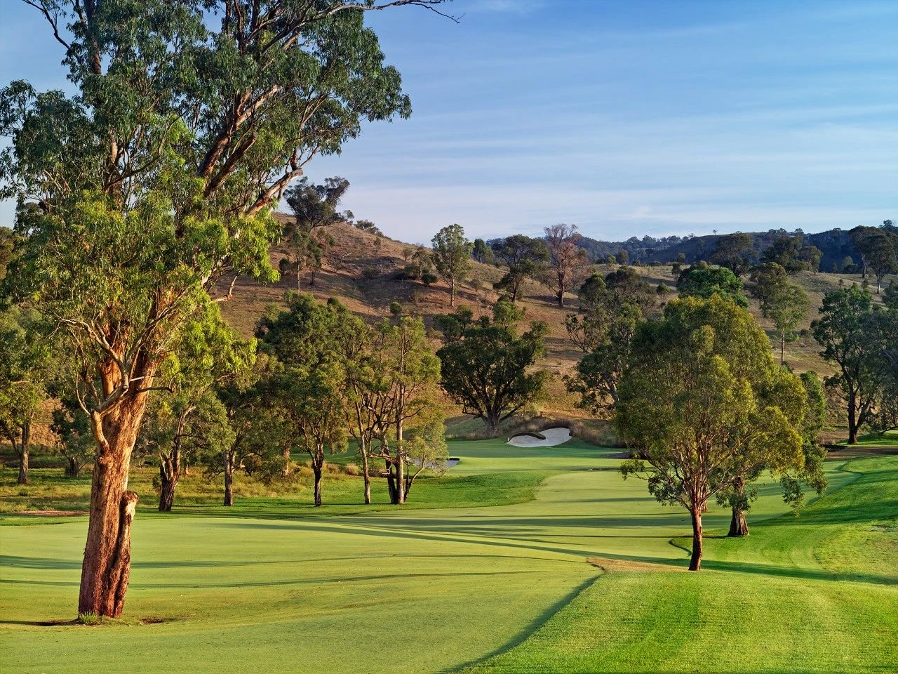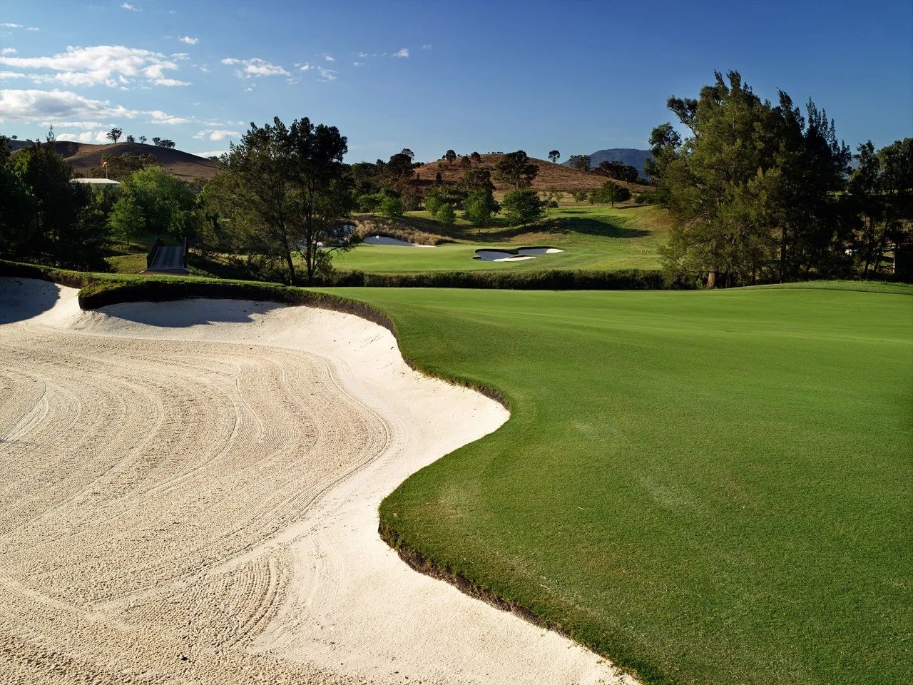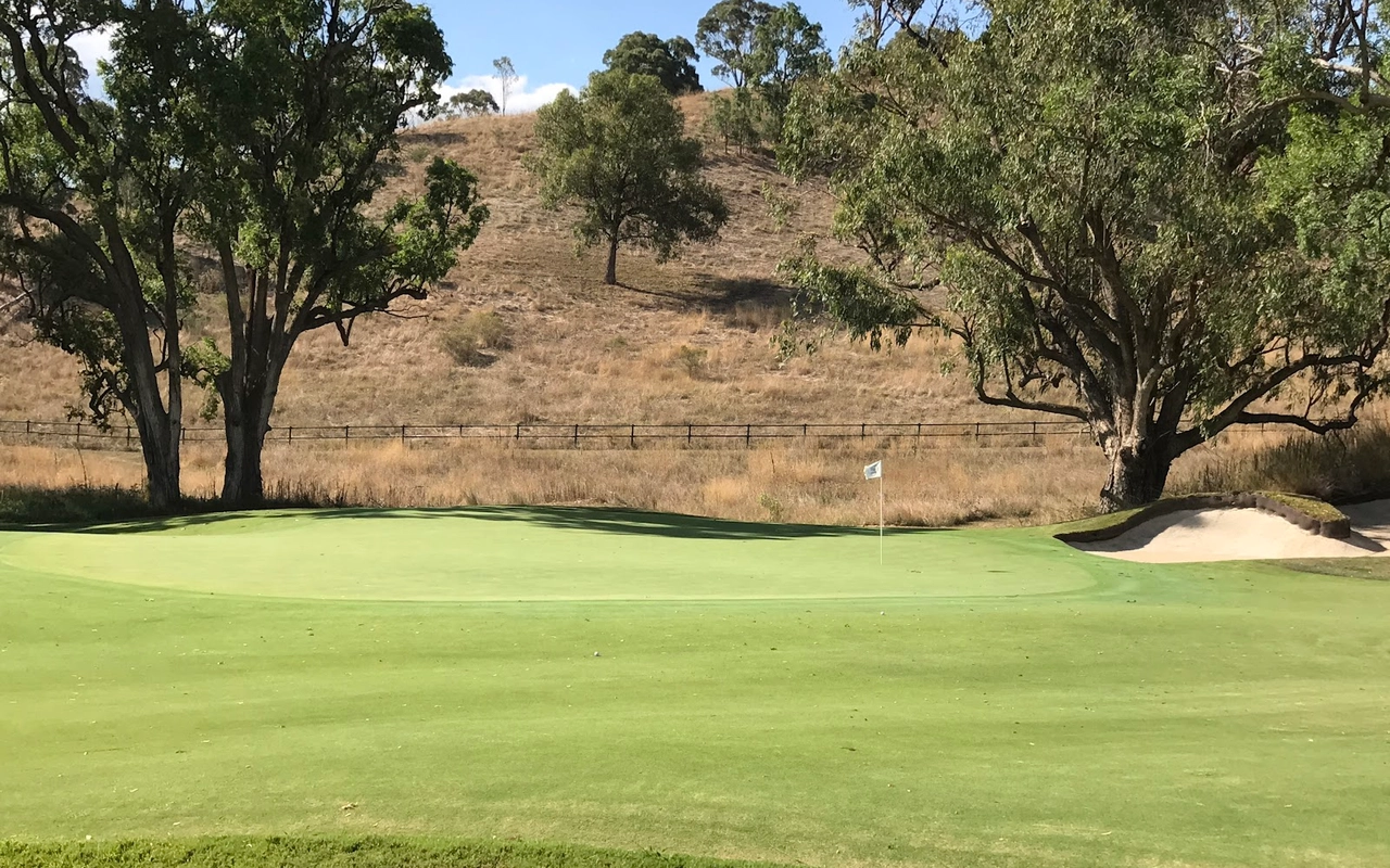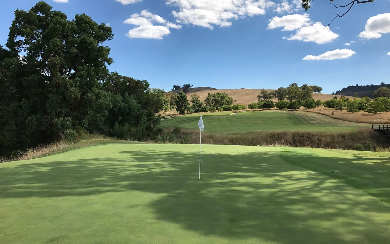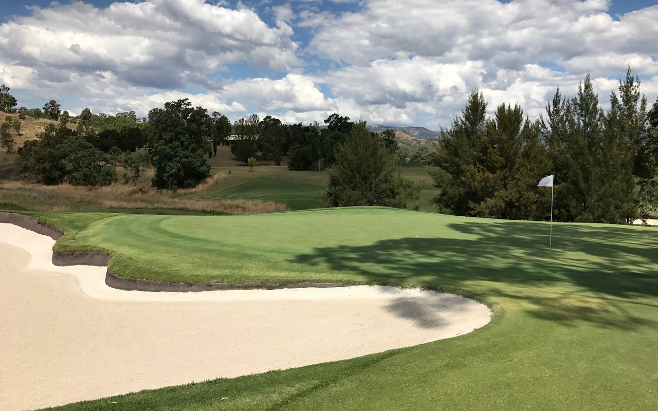 艾勒斯顿 (Ellerston) 坐落于新南威尔士州上猎人谷 (Upper Hunter Valley) 僻静的高地,是著名商人 Kerry Packer 庄园内的一座极其私密的 18 洞高尔夫球场。埃勒斯顿一直被评为世界上最好的高尔夫球场之一。美丽的埃勒斯顿庄园坐落在新南威尔士州上猎人谷僻静的高地,是名副其实的香格里拉,专供澳大利亚最富有的家庭之一独享。对于马术爱好者来说,这座庄园长期以来一直是一个地标,因为在其天然山谷和起伏的山丘中,有原始的马球场,被公认为世界上最好的马球场之一。1999 年,已故的克里·帕克 (Kerry Packer) 向格雷格·诺曼 (Greg Norman) 求婚,并指示他的公司为他建造澳大利亚最坚固、最壮观的内陆高尔夫球场,因此决定在该地产上增加高尔夫球场。由于预算不太可能成为问题,设计师诺曼·哈里森和鲍勃·哈里森面临的关键问题就变成了选择最佳地点。该团队获得全权使用帕克占地 70,000 英亩保护区的任何部分进行比赛。经过几天的搜寻,人们发现了湍急的佩吉斯溪,并立即认为这是建造帕克先生想要的戏剧性球场的完美地点。这条小溪是该布局的中心特征,并包含不少于九个球洞,其余的大部分球洞建在远离障碍区的地势较高的地区。由于对难度级别的狂热,客户决心为世界上最好的玩家提供终极挑战,这使得设计师比平时承担了更多的风险。其中一个场地,即第六球场,实际上在球场开放后不久就被大雨冲毁了。考虑到该地区容易发生洪水,这并非完全出乎意料,因此,为了减轻不断重建果岭的担忧和费用,建议采用抬高的替代方案。然而,帕克毫不犹豫地下令在原地重建果岭,并指示他的设计团队在每次果岭被冲走时都这样做。除了体验其独特性之外,艾勒斯顿的亮点还在于要求较高的长洞,这是一场无情的驾驶考验。每个球都需要在球道的优质部分放置一个长炸弹,以确保线路畅通无阻地进入果岭。其中八个四杆洞的长度在 430 至 460 码之间,但由于使用对比障碍和不断的海拔变化,它们作为一个整体非常多样化。7号洞和 8 号洞是精彩的例证,下坡的 7 号洞比 8号洞长 50 码,但通常打得更短。发球台建在山坡上,令人生畏,开球沿着小溪向 200 码外的球道打。果岭环境的多样性,无论是戏剧性地推向障碍区,还是设置在天然沟壑或小山脊上,都非常引人注目。大多数目标都由令人印象深刻的诺曼/哈里森掩体形状构成,尽管像第 5号、第 10号和第 16号这样的无掩体目标也很有吸引力。翦草推杆面专为高速而设计,面积巨大且毫无瑕疵。同样,球道的呈现通常是无可挑剔的。水牛短草为纯粹的沙发打球走廊提供了鲜明的颜色和纹理。