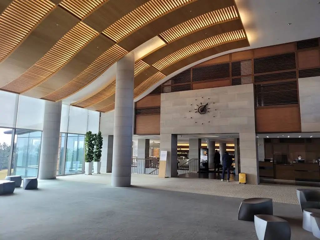 Haevchi;酒店采用独特的中庭结构设计,并没有一个可以净化空气的室内花园。作为一家顶级酒店,Haencdhi酒店兼具美观与高效,玻璃天花板的采光更是锦上涿花。