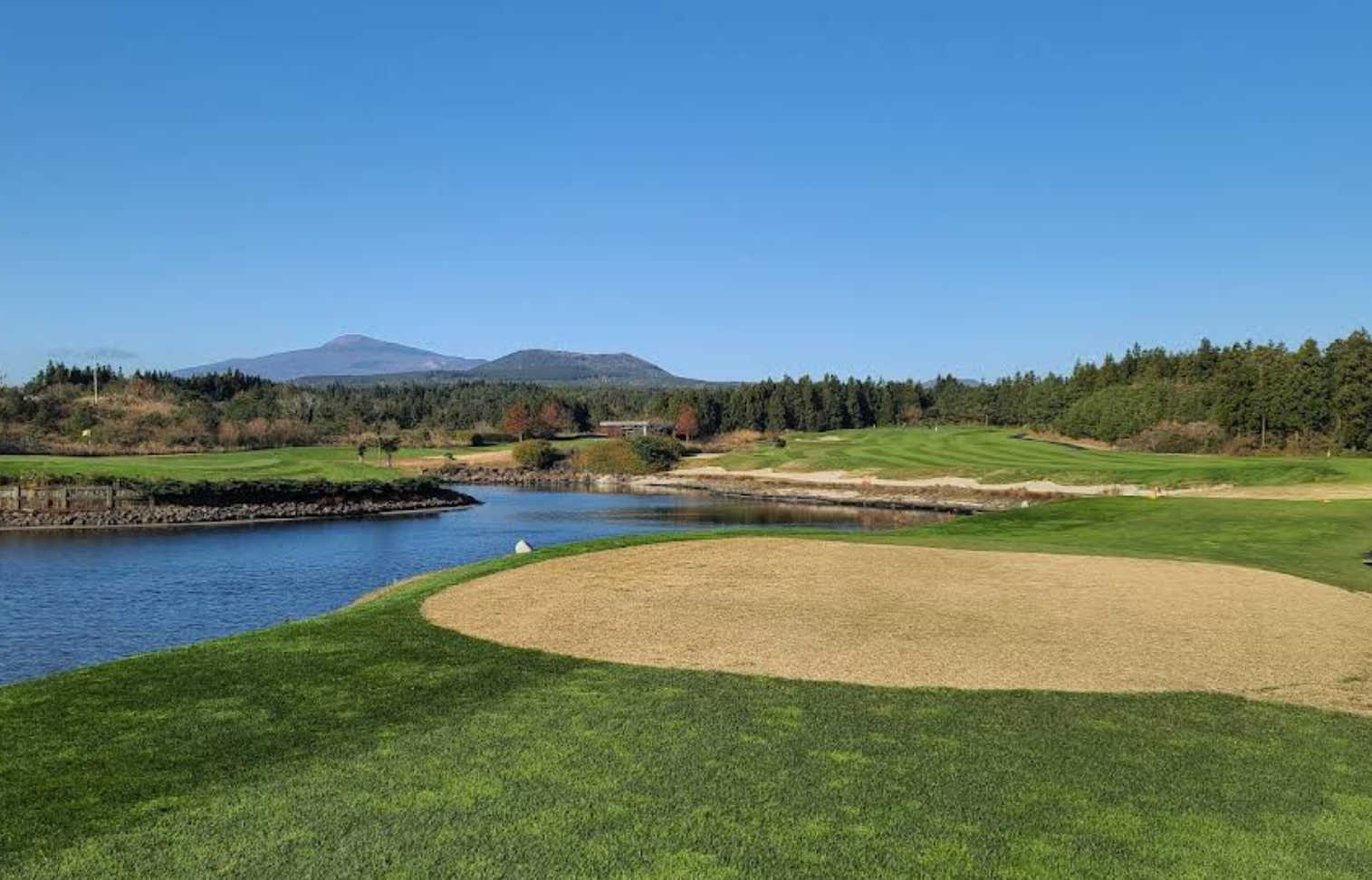 在济州岛迷人的大自然中心,体验高尔夫,有 36 个球洞位于岛上茂密的森林、风景如画的山丘和蔚蓝的大海中。