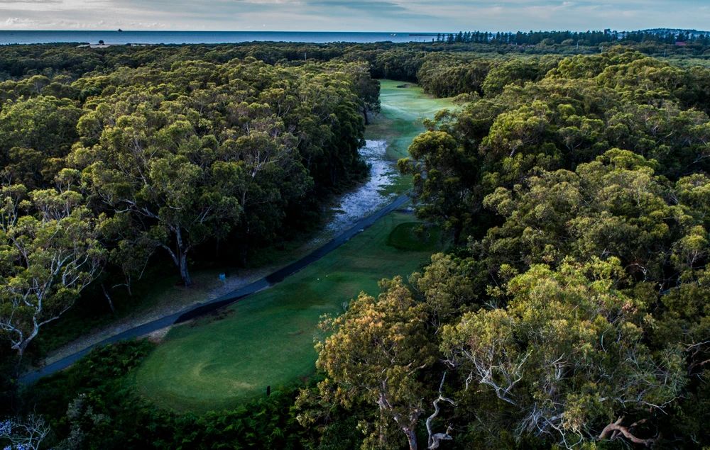 纽卡斯尔高尔夫俱乐部于 1905 年在纽卡斯尔 Broadmeadow 的旧赛马场旧址上成立,但直到 1906 年才注册为上市公司。1913-14 年,纽卡斯尔高尔夫俱乐部 (Newcastle Golf Club) 在弗恩湾 (Fern Bay) 一片偏远的沙丘乡村(当时称为北斯托克顿)的 9 洞布局开始施工。比赛于 1915 年开始,高尔夫球手们从纽卡斯尔乘坐包租渡轮出发。20 世纪 30 年代,车辆渡轮服务使球场变得更加便捷,埃里克·阿珀利 (Eric Apperly) 受委托设计一座 18 洞球场。原来的 9 洞中的 7 洞被纳入 18 洞设计,这是对先驱者远见卓识的致敬。纽卡斯尔位于亨特河河口,距离悉尼两小时车程,是新南威尔士州仅有的两座获得世界百强球场专家小组认可的球场之一。它最近被评为“国际荣誉奖”,这意味着它已经赢得了足够的分数,足以跻身 美国以外的100 门课程之列。由于世界小组中只有少数人曾在纽卡斯尔踢过球,所以玩过这颗隐藏宝石的人对它的评价如此之高,这足以说明一切。这是一座真正的锦标赛球场,长 6200 米(6780 码),以起伏的沙丘为基础,就像英国和爱尔兰历史悠久的林克斯球场一样。然而,纽卡斯尔的球道不是由金雀花和石南花组成,而是由桉树和安格鲁树森林开辟而成,这里有丰富的本土动植物,包括笑翠鸟、胡须龙和小袋鼠,这使得这里成为一个既令人愉快又具有挑战性的球场。纽卡斯尔高尔夫俱乐部的第 5 洞被评为澳大利亚 20 个最佳洞之一,深受会员喜爱。果岭两侧都有沙坑严密守卫,左侧的深沙坑要求尤其严苛。将球打到果岭上几乎是不可能的,因为果岭前面的山脊将球准确无误地引导到两侧的沙坑中。如果您在第 5 号洞打出标准杆,请感到自豪,作为澳大利亚排名最高的洞之一,保持标准杆是一项真正的成就。纽卡斯尔高尔夫俱乐部的 367m、四杆、6 号洞位列世界前 500 个高尔夫球洞。作为澳大利亚仅有的 16 个入选世界最佳 500 洞的洞之一,第六洞为任何高尔夫球手提供了激动人心的挑战。虽然球场距离繁忙的工业城市和纽卡斯尔港口仅几公里,但分隔球道的宽阔树林给人一种远离尘世烦恼的宁静感觉。设施包括全长练习球道、大型切杆和果岭、服务齐全的高尔夫商店、酒吧和餐饮。