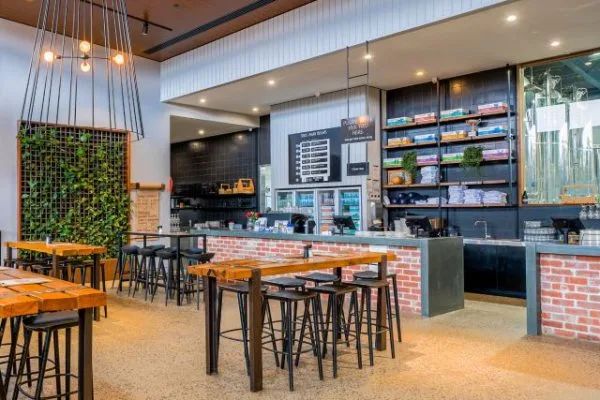 圣安德鲁斯海滩俱乐部会所是一个令人放松的赛前和赛后中心,配有储备充足的球场食品和饮料车。