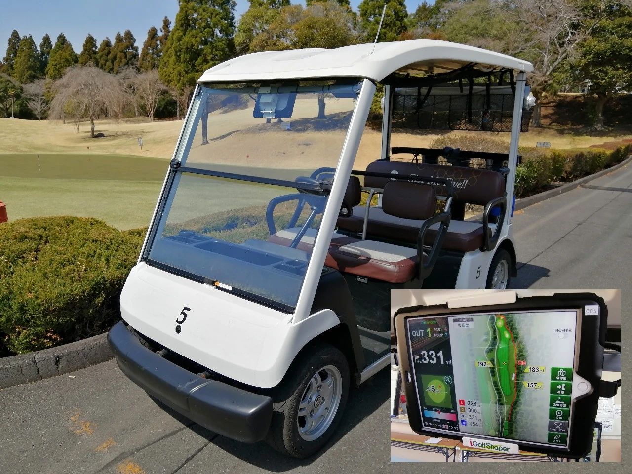 与“最新iPad型5座导航遥控客车”作为您的伙伴,享受舒适的回合。 KartNavi 不仅可以让您准确查看赛道布局,还可以准确查看到果岭和障碍区的距离。您可以清楚地看到果岭的形状,这通常很难理解。