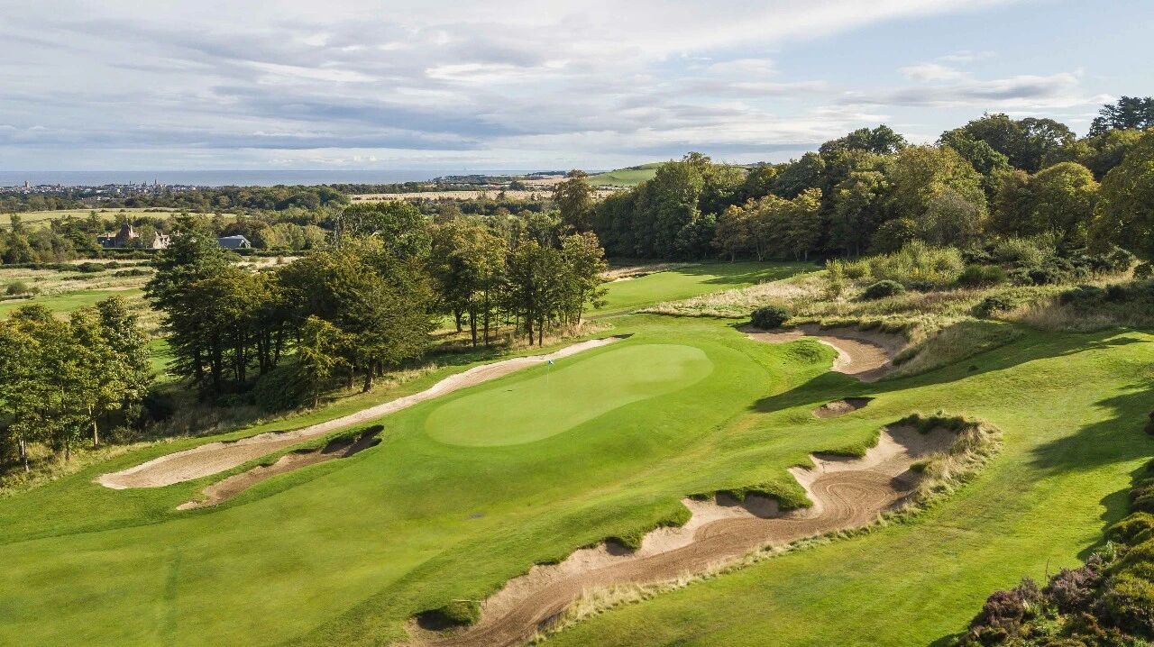 杜克球场是圣安德鲁斯小镇上唯一一个非林克斯球场,隶属于老球场酒店旗下,而老球场酒店&度假村是科勒集团的,酒店虽然酒店老球场旁边,集团给圣圣安老球场并没有什么关系。他们也拿不到老球场的保证席位,球场是有澳洲高尔夫传奇Peter Thomson设计的,1995年开业,后来2006年进行过一次翻修,由Peter Dye,北戴负责,给球场增添了不少的沙坑,球场全程7512码,有5个发球台,适合不同水平的球员。如果你去圣安德鲁斯,有幸能订到老球场酒店,酒店会免费提供往返球场的穿梭巴士。这座球场也是值得体验的。