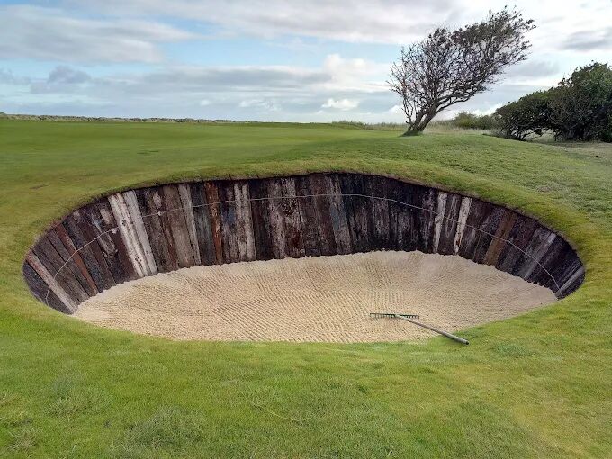 涨潮时无法驾车前往俱乐部会所,第 8 洞和第 9 洞都受到潮汐的影响。穿过海滩从俱乐部会所走到球场,立即给人一种愉快和轻松的期待感。