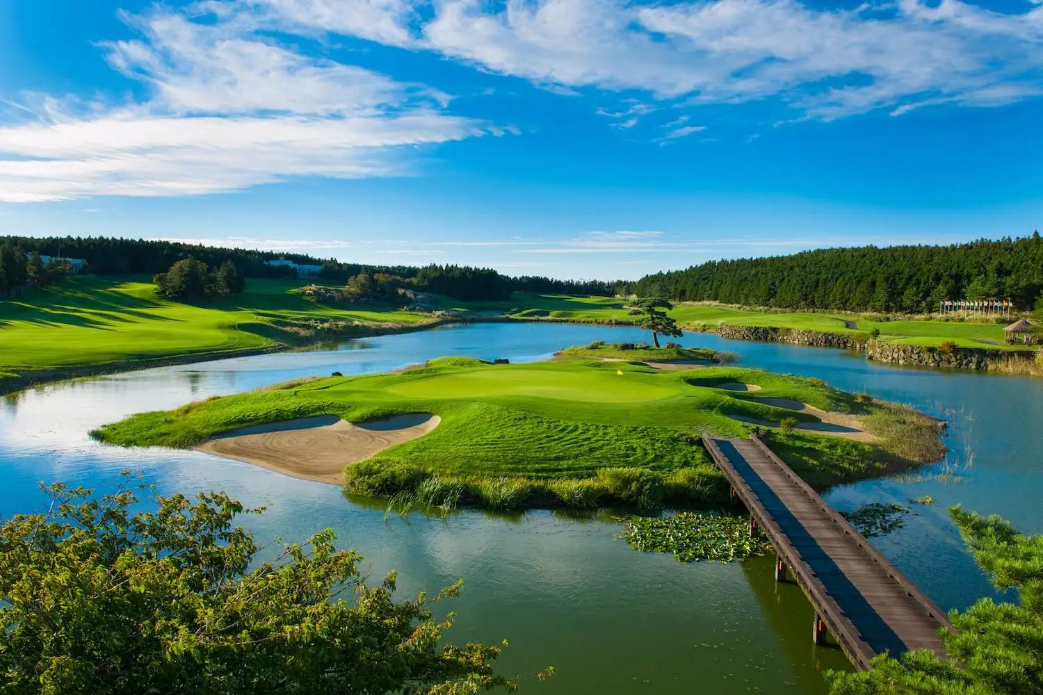 2017年,九桥俱乐部名副其实地确立了世界级球场的地位,名列“世界百强球场第41位”。这是不断变革和创造的结果,包括选址和设计、生态友好球场的打造。九桥位于汉拿山 600 米处,周围环绕着国家公园。该俱乐部耗资近 1 亿美元建造,提供纯粹的高尔夫体验,没有任何外界干扰或住宅部分,并且因其维护良好的翦草球场而被人们铭记。该俱乐部的建造成本接近 1 亿美元,总支出的很大一部分覆盖了所有 18 个发球台、果岭和球道,并在长草区种植了翦股颖和肯塔基蓝,以提供对比并增加视觉清晰度。除了优质的草地之外,球道的塑造也比韩国大多数球场处于更高水平。值得庆幸的是,设计师罗纳德·弗雷姆 (Ronald Fream) 较少关注这里的土丘,而更多地关注创造逼真的内部运动和自然的高尔夫球洞。另一方面,开场九洞非常棒,跨越了几个天然峡谷,这些峡谷被巧妙地融入到长五杆洞的第三洞和困难的第四洞。它还在许多其他球洞上提供了真正的战略选择。例如,第 5 号球道向右弯曲绕过一个大型沙坑综合体,然后向左绕过湖泊,紧随其后的是英国风格的第 6 号球道,其鼻孔般的沙坑位于球道中间,迫使您要么从发球台后退,要么开球进入球道。较安全但较长的左侧或危险右侧的一侧。根据客户的品味提供定制服务,包括苏格兰羊绒、意大利皮具以及只有有尊严的人才能欣赏价值的奢侈品。
