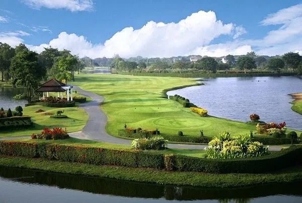 皇家高尔夫乡村俱乐部占地超过2000莱(约3.2平方公里),位于泰国拉尔克邦地区,临近曼谷-春武里高速公路和Onnuch路,方便前往曼谷的主要商业区。这座世界级球场由著名的职业高尔夫球场设计师Mr.Chonei Miyasawa精心设计,他的作品包括众多位于日本、韩国和关岛的优秀球场。这座壮观的高尔夫球场在设计时保留了整个自然环境,为球手提供一个风景优美,耳目一新的氛围,以便他们尽情享受打球的过程。走在这个18洞球场的每一步,不仅会遇到各种各样的挑战,秀丽美景也会映入眼帘。标准杆为4杆的第16洞被称为“米奇老鼠洞”,因为这里两个沙坑的设置,就像这个著名的迪士尼卡通人物那两只引人注目的耳朵。这里是宁静的休憩之所,被五彩缤纷的花朵和成荫的绿树包围。这里的自然风光、波光粼粼的湖泊和精心设计的景观交相辉映,让您能在此度过美好的一天,经历一段让您耳目一新又富有挑战性的体验。如果亲眼目睹这个精妙绝伦的球场,就明白为什么它会被许多国际业余和职业球手称赞为泰国最好的高尔夫球场之一。