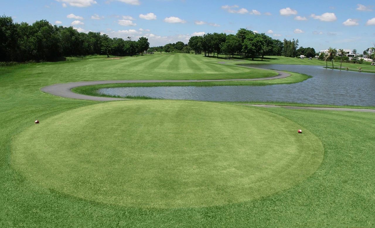 为后九个洞的陷阱留出足够的高尔夫球。第十八洞是这个高尔夫球场的瑰宝,无论从美丽程度还是难度上看都是如此。果岭四周环绕着水,在壮丽的景色中显得格外突出。在接近第二杆时要保持专注,因为这个绿岛周围的水障碍可能会吓到经验不足的高尔夫球手,并让专业高尔夫球手陷入其中。
