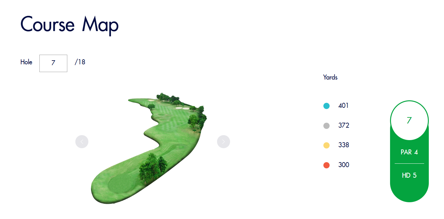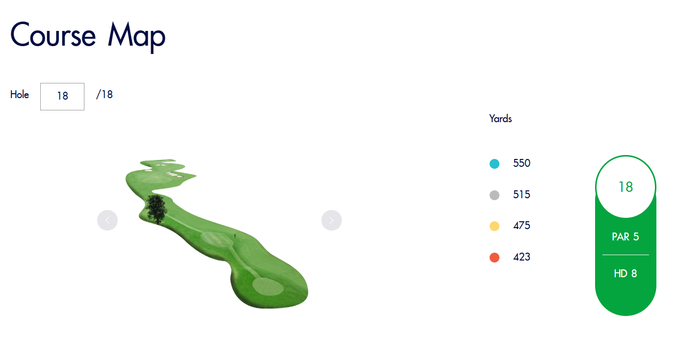 球场设计最大限度地利用了自然环境,以享受性和战略性为核心,湖泊、沙坑、土丘分布其中,提高了设计美感,为每位球手带来挑战。