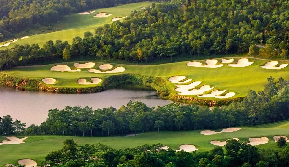 该综合体的亮点是由布莱恩·柯利 (Brian Curley) 设计的国际标准高尔夫球场链,他在高尔夫杂志“年度建筑”排行榜上排名第四。他还被称为观澜湖的设计师——目前世界上最大的高尔夫球场之一。