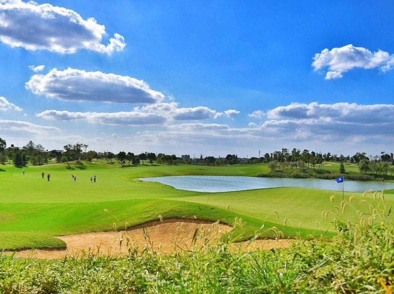 上海旗忠高尔夫俱乐部位於上海西南工商业极为发达的闵行区,球场占地面积1200亩,是一所18洞的高尔夫俱乐部,18洞全长7129码,标准杆:72杆,是由美国TRC公司设计完成的。一直以来,旗忠高尔夫球会凭借别致出色的球场设计,优越的地理位置,闲逸的周边环境赢得各界球友的青睐。