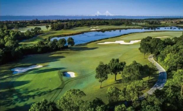 东庄海岸位于浦东机场北侧,两个风格迥异的球场均为标准18洞锦标赛级球场,邀请国际知名球场设计公司JMP担任球场设计及造型工作,总面积超过2700亩,斥资亿元打造。东庄海岸无论是园景球场亦或是林克斯球场球道全长均超过7300码。园景球场(Park land)以挑战性著称,在设计中布满了湖水、小溪。球友打球时需要避开四处蔓延的沙坑,极致的自然景观坐落于每一洞发球台与果岭之间,在繁华喧嚣的城市限制中,还能享受森林的清新,让人流连忘返。