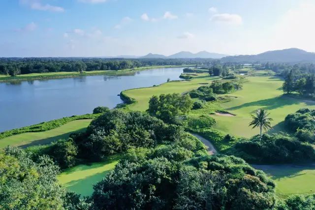 最长距离的洞是第9号洞557码,最短距离的洞是第4号洞153码;难度最大的洞是第13号洞441码。 球场周围环江绕海,四面碧水泛波,融海天风光和远山近水于一体,即使是盛夏也是凉风随身,候鸟伴行。 一座既过球瘾又有野趣的自然公园,让您再挥杆击球之余揽尽河海美景,尽情感受亚洲热带球场独具的自然风情。