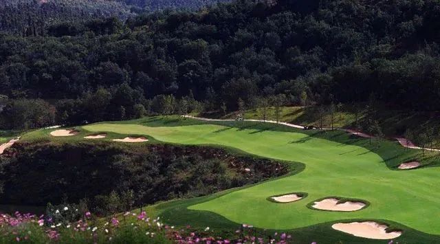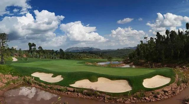 玉龙湾球场是由世界知名的美国史密特. 科里设计公司的主创李. 史密特先生亲自精心设计的国际标准锦标赛级别的山地高尔夫球场。球场四周峰峦叠嶂,树木苍翠,花红柳绿,碧草如茵,设计依山势起伏,保留了自然的地势景貌;利用天然形成的岩石 、丛林、湖泊等成为球道上的天然障碍区和球场景观点缀,让整个球场拥有美不胜收的景色。让球友一如挥杆阿尔卑斯的纯净山水间,尽享辗转探索山地高尔夫的人生胜境。同时球场具有高难度的挑战性。球道跌宕起伏、变化丰富、高地落差大、球道坡度大,又有沟壑,山谷,湖泊相间,增加了挑战的趣味和难度,为球友带来了充分的乐趣和别具一格的高尔夫体验。