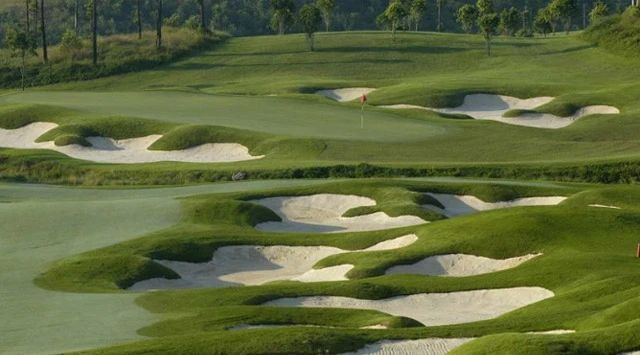 球场占地面积67.5万平方米,建筑面积7400余平方米,包括接待大厅、球童室、管理楼、仓库、加油站、变电室、空调机房、职工休息区等设施,属国际标准18孔道高球夫球场。