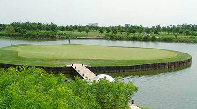 球场由国内著名设计师、职业球手程军设计。球场风格为平原湖泊式,球场内大小水系布局巧妙,为国际标准18洞锦标赛场地,标准杆72杆。同时聘请国际知名的高尔夫景观大师冯绍龙先生设计,斥巨资改造球场的景观,球场内选取品种众多的昂贵树木,选用美国最新的本特T1果岭草坪,打造巨型的花园氧吧,令人赏心悦目。同时错落有致的设计、流畅的线条使球场充满灵性,球场峰峦起伏,碧水蓝天,风景如画,天然湖泊点缀其间,使不同层次的球手在此都能真正享受到高尔夫运动的乐趣和挑战,携友信步闲庭,让球技发挥的淋漓尽致,让身心尽情投入大自然的环抱。