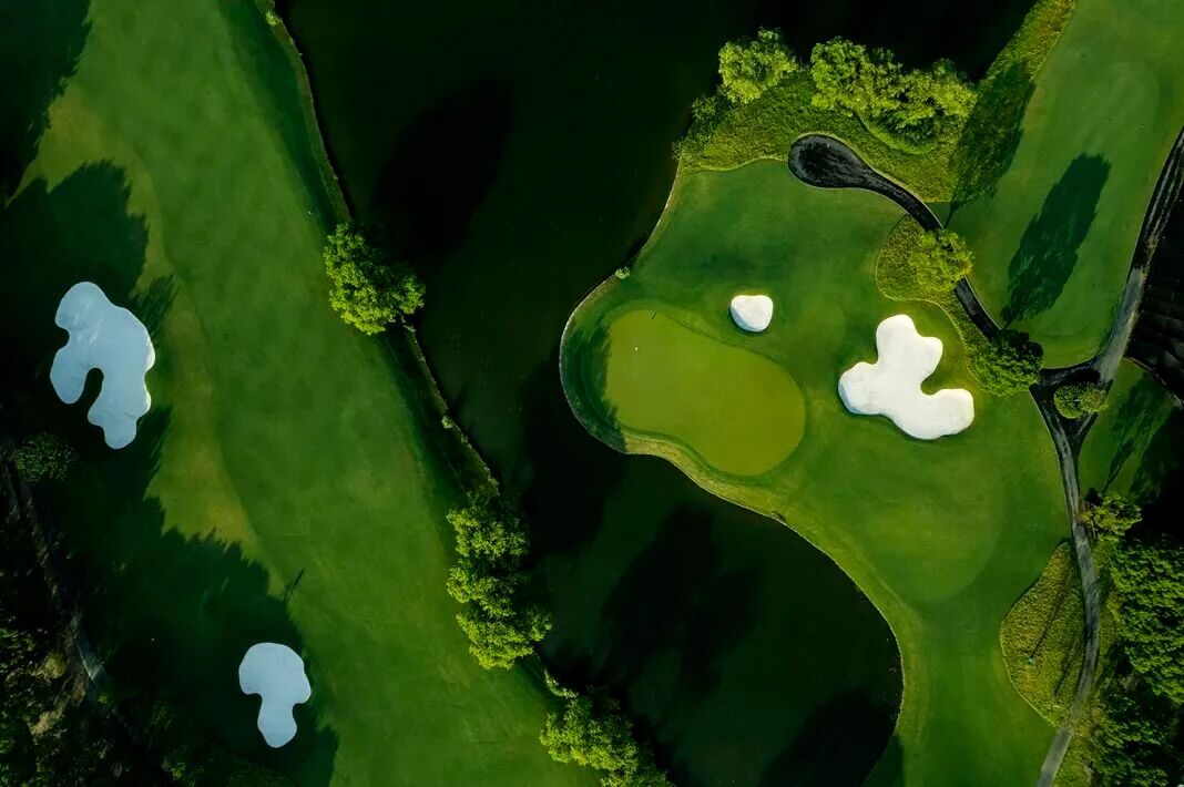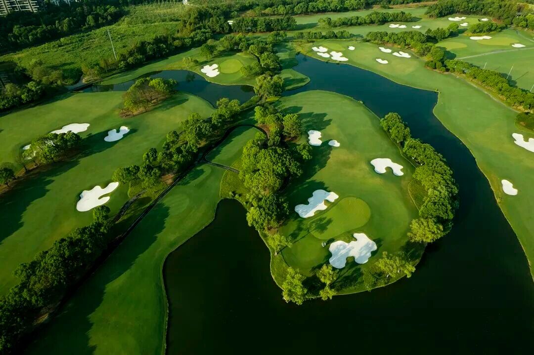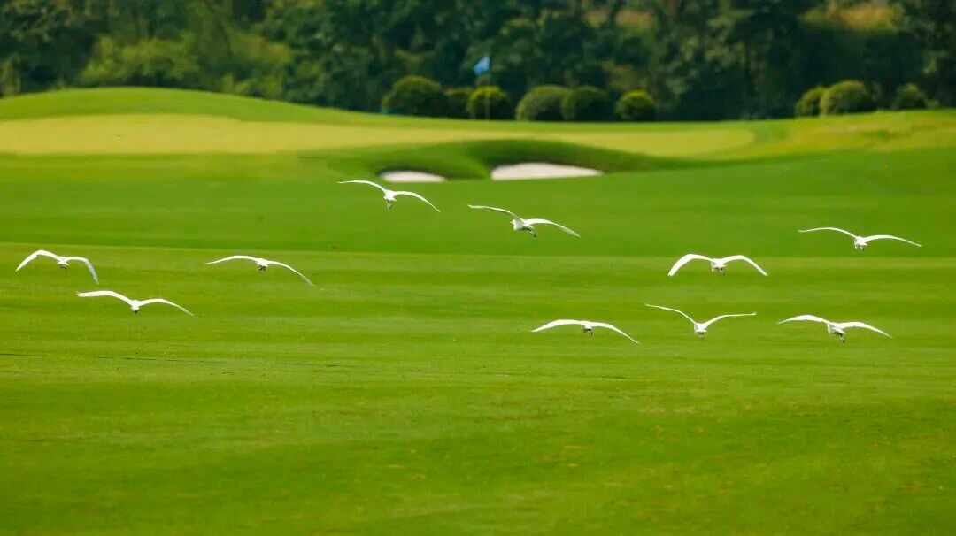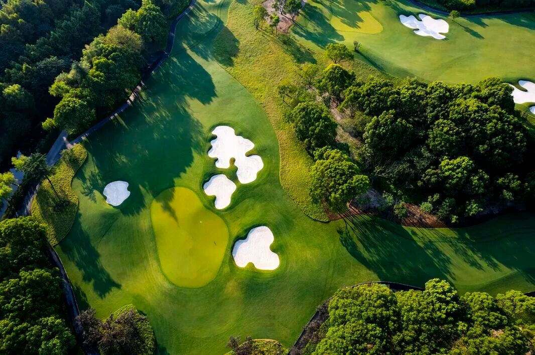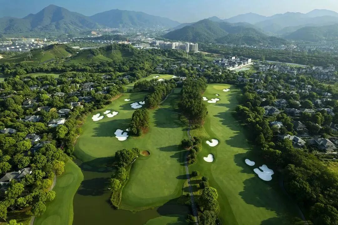 青山环抱中的球场,气势浩大地铺陈在湖泊、树林和小溪之间,随自然地势起伏柔美,使小桥流水的江南风情与尼克劳斯的球场设计水乳交融、尤如天成。