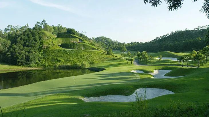 雄崌观澜湖深圳球会最高地势,艾斯球场的最大特色是利用地势的高低变化,创造出一个居高临下的球场。