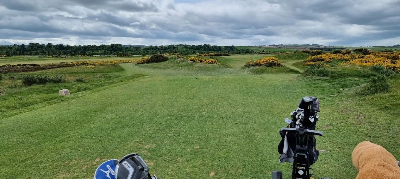 发球台左右两侧的金雀花让短四杆洞看起来令人生畏。然而,球道的开口为 150 码,右侧有足够的空间。