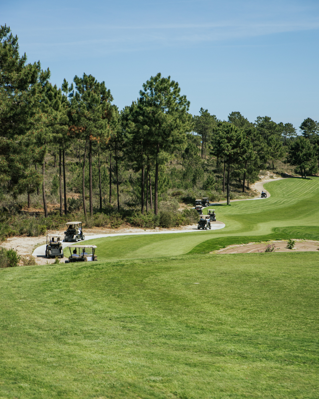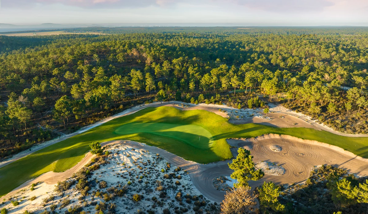 该 18 洞高尔夫球场由著名建筑师 David McLay-Kidd 设计,于 2023 年 10 月正式开业,以其卓越的设计、维护和客户服务品质而独一无二。71 杆的布局在 2023 年立即赢得了赞誉,包括在 2023 年世界高尔夫奖上被评为“世界和欧洲最佳新高尔夫球场”,并在《高尔夫世界》杂志备受推崇的“欧洲 100 佳高尔夫球场”行业调查中排名第九。 2023-2024 年欧洲大陆。葡萄牙最大的房地产开发商 Vanguard Properties 于 2019 年收购了令人惊叹的 Terras da Comporta 开发项目的所有权。该地块由两块占地 365 公顷的巨大地块组成:Torre 位于 Alcacer do Sal市Dunas 则覆盖Grandola 市内占地约 1,000 公顷。该球场位于佐渡河口自然保护区附近,由 David McLay-Kidd 设计的Dunas 球场最初计划于 2010年启动,但圣埃斯皮里图银行(BancoEspirito Santo)的倒闭使一切搁置,直到先锋集团(Vanguard) 介入施工才得以恢复并进行18洞高尔夫球场的定型工作,它以将于 2023 年夏季举行的开幕式的形式正式揭幕。杜纳斯球场分布在一片巨大的庄园内,羊茅制成的球道穿过巨大的沙丘。它们通向位于凹陷和山脊上的弯曲果岭。大多数洞的两侧都是松树,但没有幽闭恐惧症的感觉,因为路径很长,周围是大片沙子荒地和巨大的沙坑。然而,由于场地很大,它不是步入式球场,因此使用越野车是打球的一个重要选择。尽管比赛区面积巨大,从3,847米到3,646米,全长6,646 米,每个洞都有一系列发球台,让各个级别的高尔夫球手都可以在这里开球,感受过山车般的刺激。一些值得一提的洞包括下坡洞 33.(果岭前后相距 60 米)和长七杆洞(击球指数 1.),球道在到达前后倾斜的果岭时会大幅下降。后九洞第 12 洞长 557 米。这是球场上最长的五杆洞,需要从发球台上公平地开球。然而,正是这个孔的水平使其在其他孔中脱颖而出。