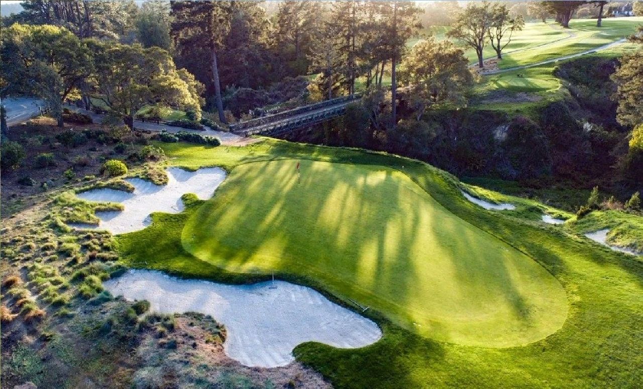 Pasatiempo 的特色是果岭的形状。在这里,你不会看到很多受欢迎的圆形或椭圆形果岭。麦肯齐博士喜欢变形虫状的果岭,它们会膨胀、变窄或以尴尬的角度出现。这里有几个我称之为“指尖陀螺”的果岭——三叉三角形推杆面。这些不寻常的目标可能会导致更多的犹豫不决,同时也会减少犯错的空间。