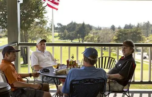 拱形天花板和宽敞的餐厅为您提供远离圣克鲁斯市中心喧嚣的休闲场所。在雾蒙蒙的早晨,您可以在壁炉旁用餐,也可以在靠窗的餐桌旁享用风景优美的午餐。您也可以选择坐在 Pasatiempo 9 号果岭外的环绕式阳台上,一边品尝赛后茶点,一边欣赏下面的高尔夫球手和壮观的日落。MacKenzie Grill 有 5 台大屏幕电视,始终播放当前的体育赛事,因此您可以在比赛日为您最喜欢的球队加油。
