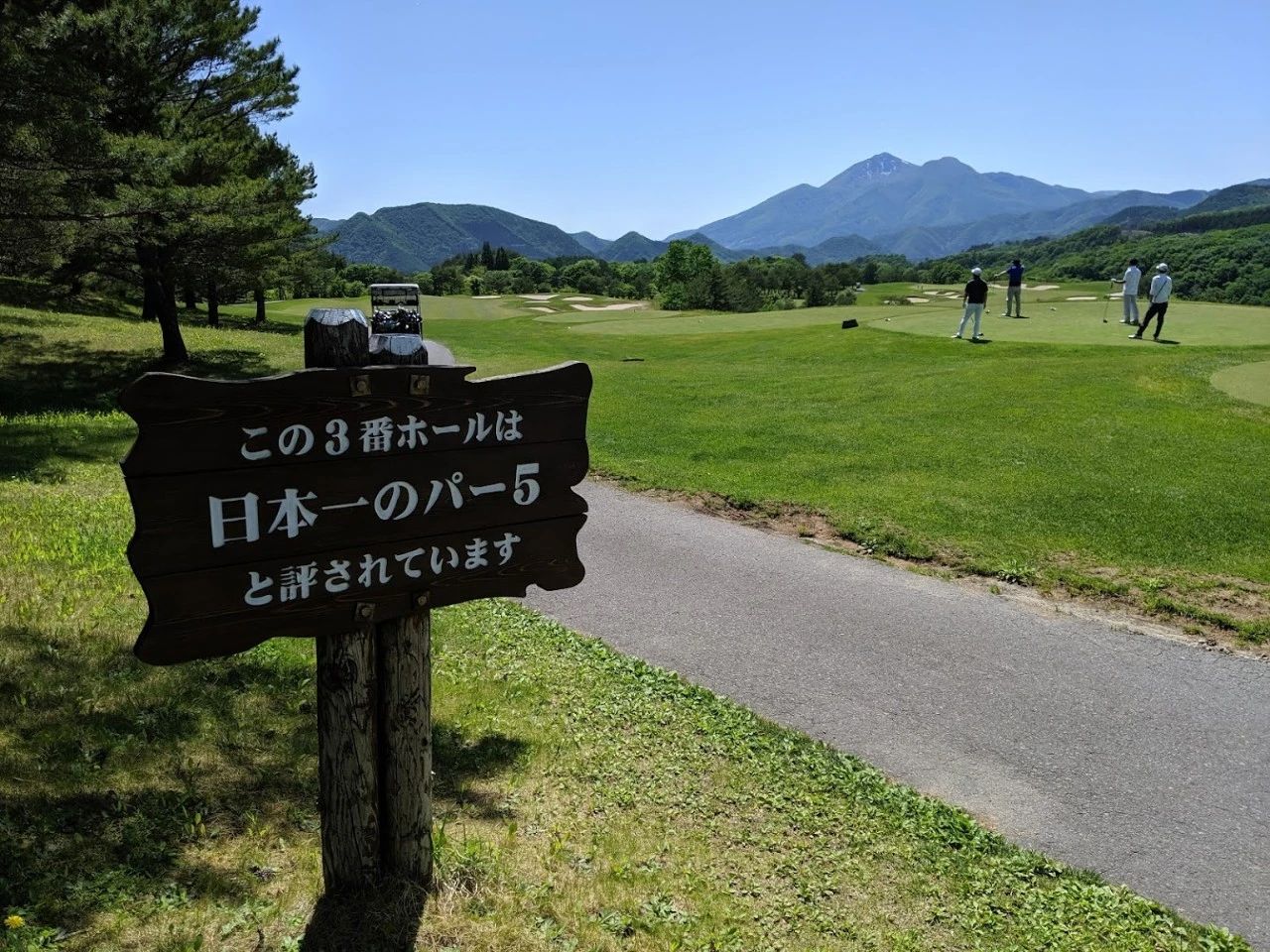 球道极其宽阔。前面是俱乐部会所,远处是太良足立和舞台的终点洞。果岭右侧有很多障碍,所以从第一杆开始向左进攻是有利的。 280Y附近有一条干涸的小溪,我想知道是否应该过去。那将是你最终的选择。