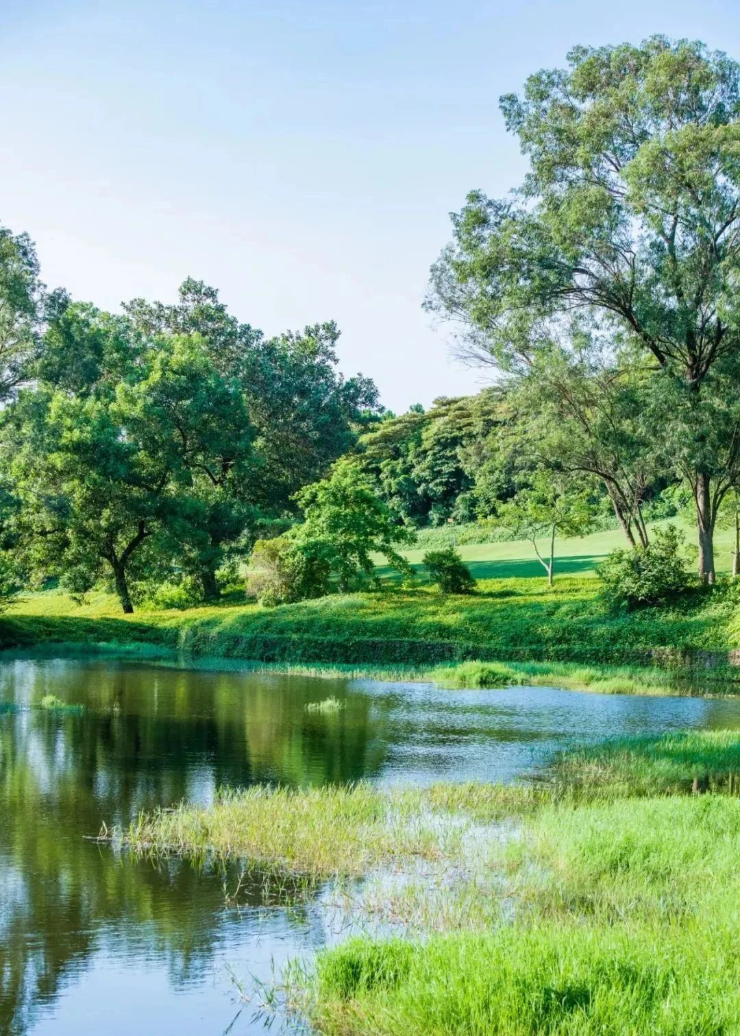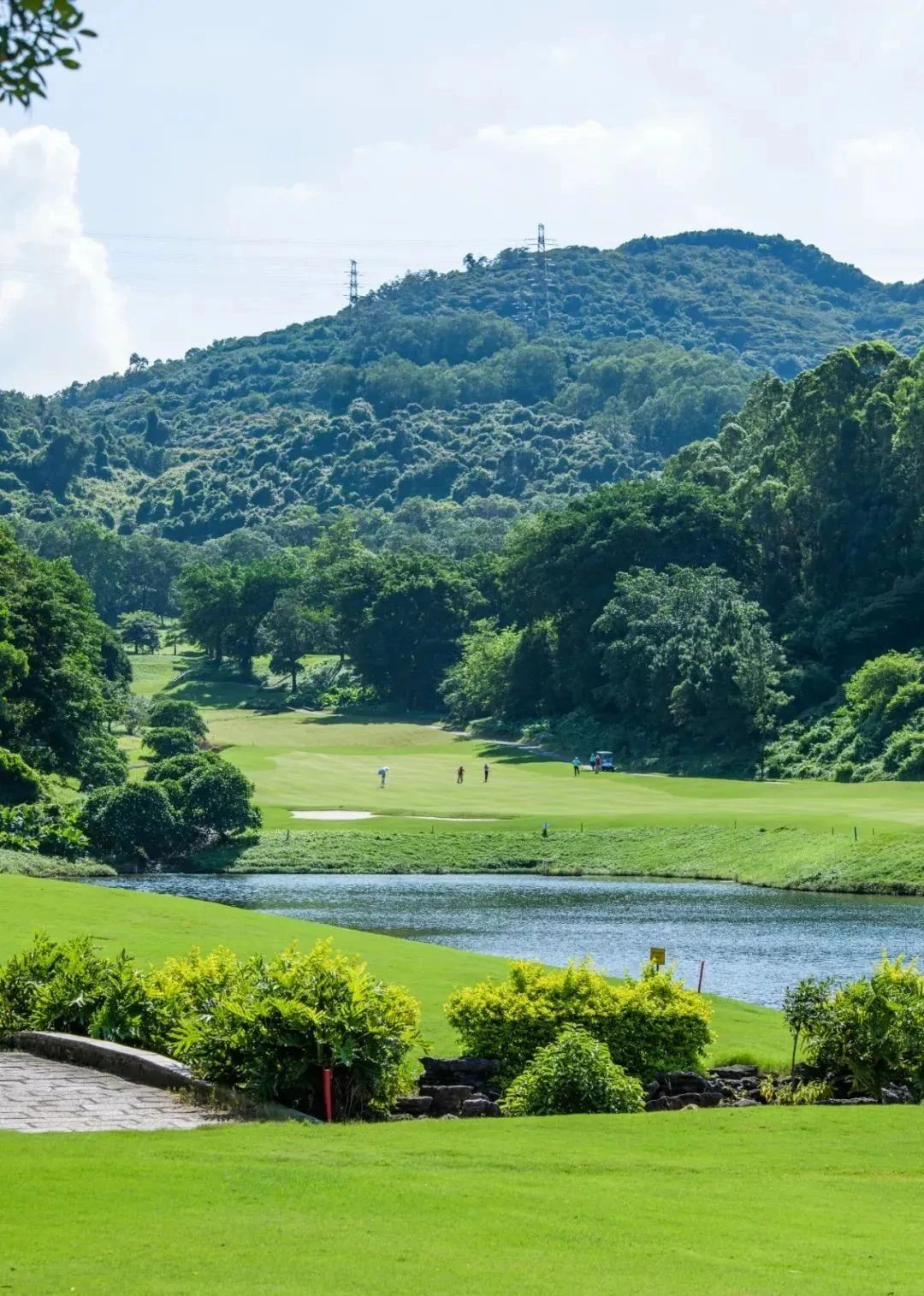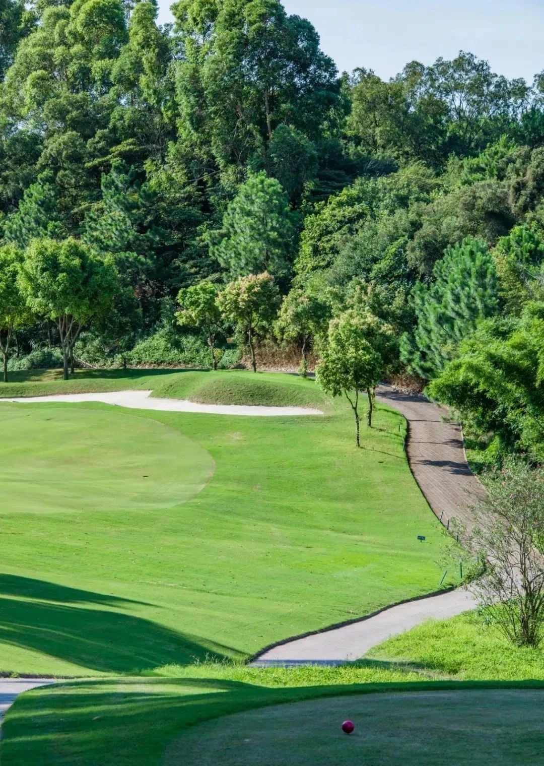 整个芦湾场的绿茵、湖泊、山林相映成趣,更有小丘、沙地高低错落。在犹如画卷般美丽的球场中眺青山、瞰碧水、挥球杆,真是惬意呀!