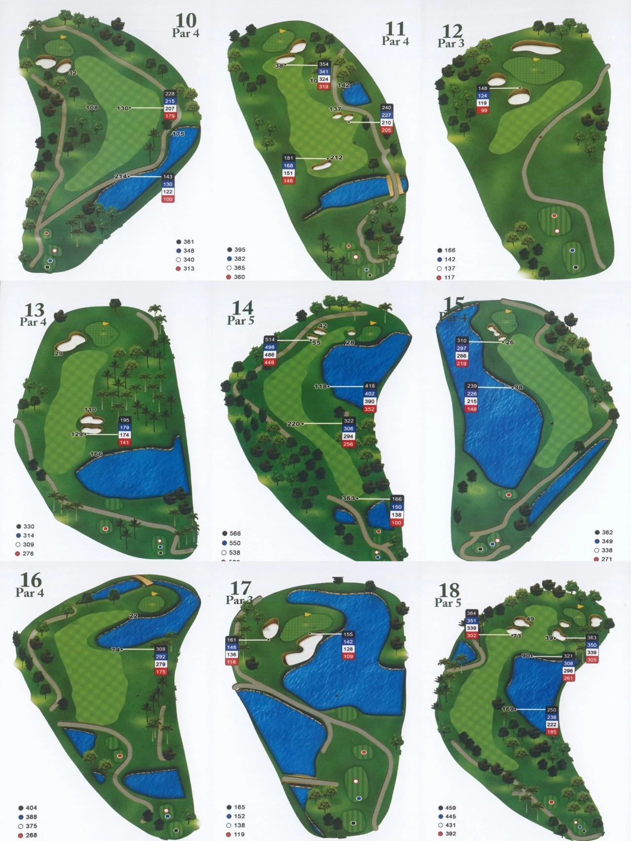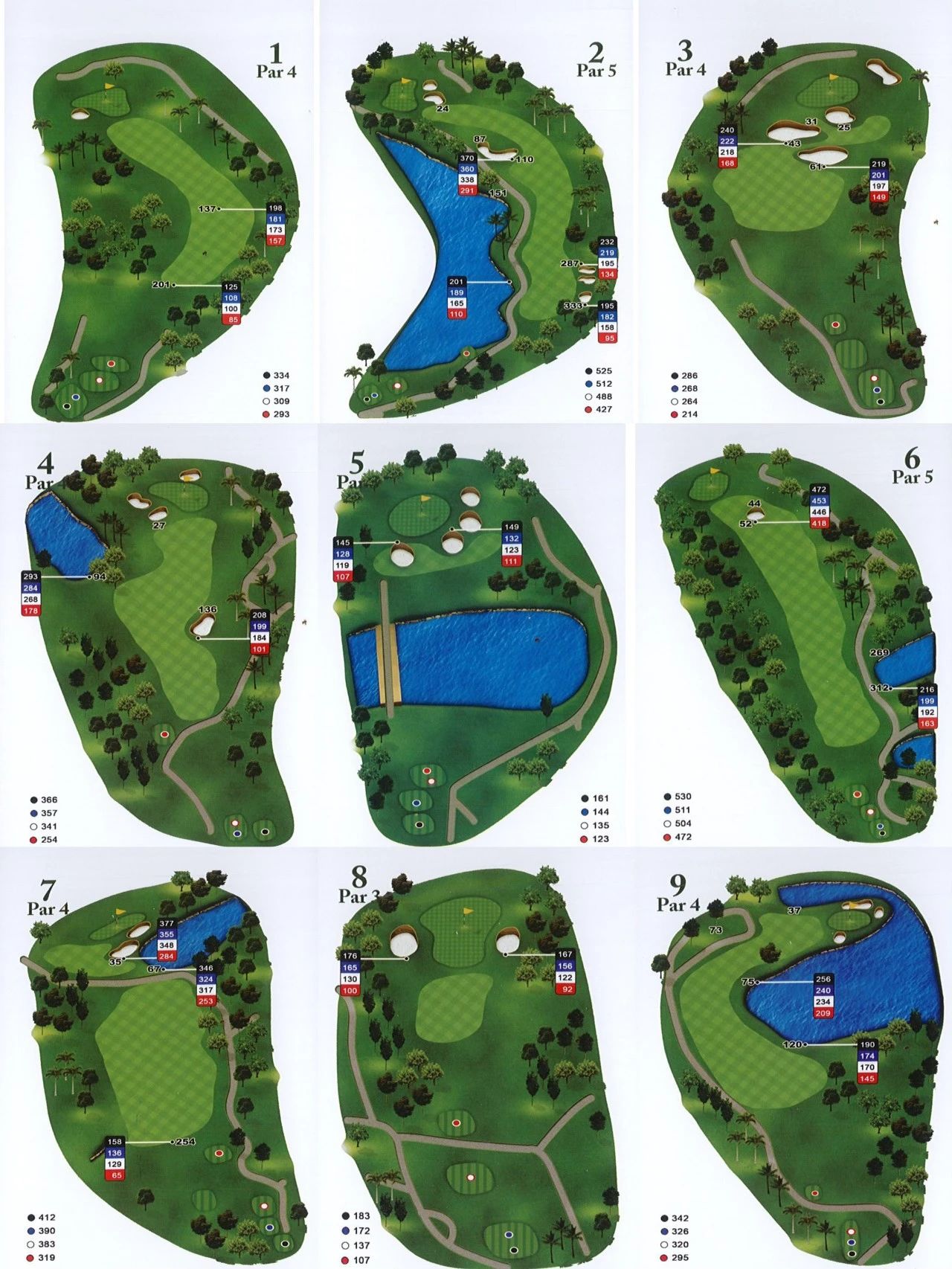 这片球场的主要特点是其起伏的球道和轮廓分明的果岭,横跨一系列小湖、水道和小山丘一一这些巧妙的设计增加了球场的难度。
