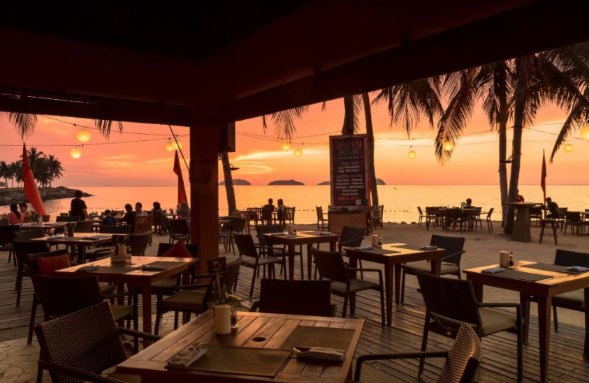 该球场从内地开球并沿着沙滩从第三洞打至第五洞,背景是高峻的京那巴鲁鲁峰。