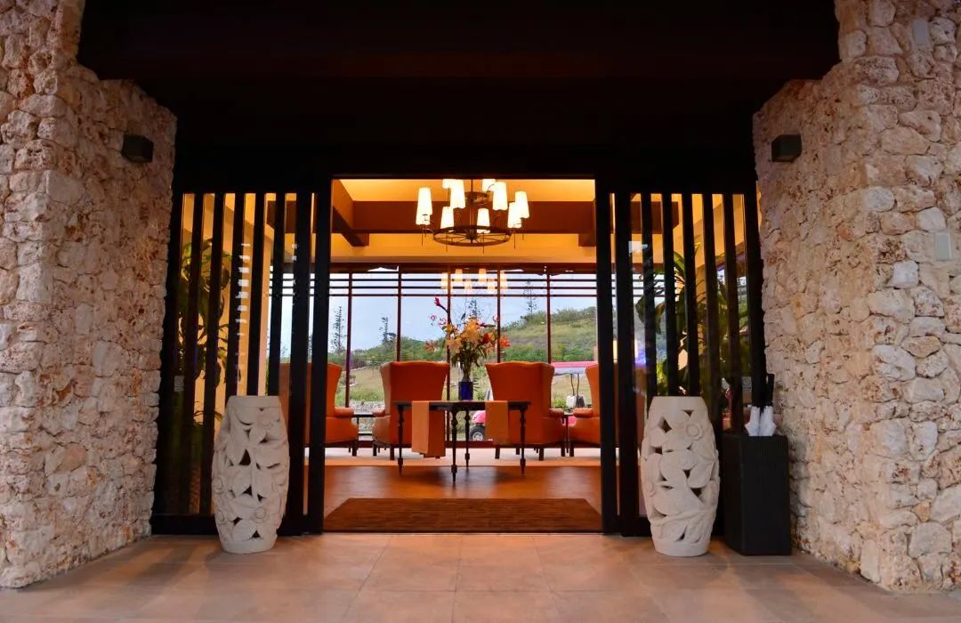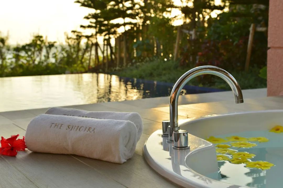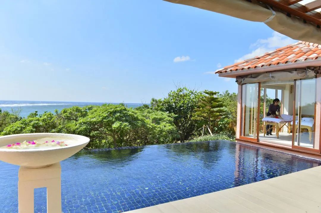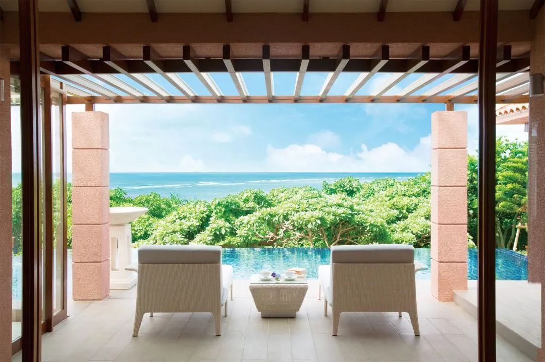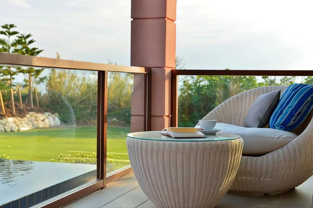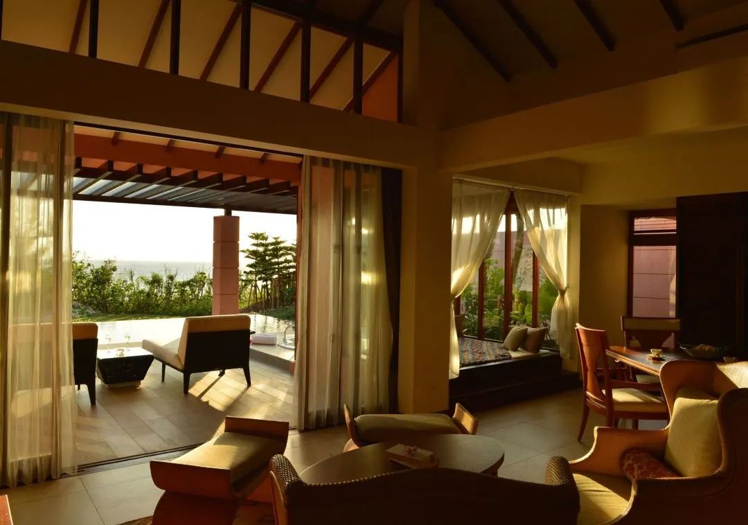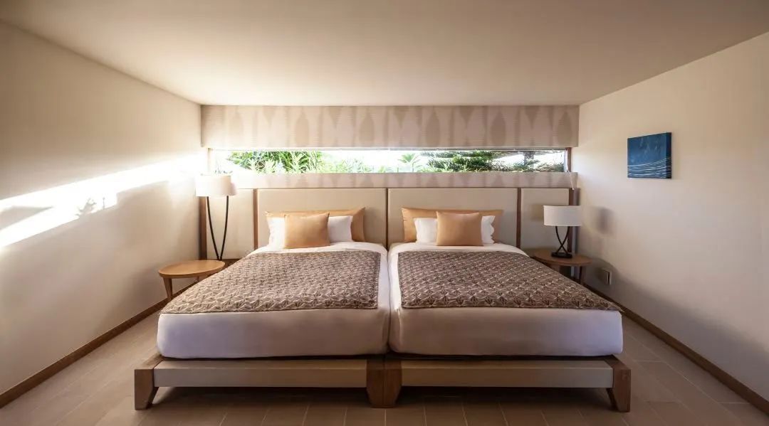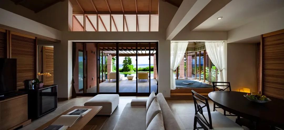 度假村坐落在缓缓向大海倾斜的土地上,从任何地方都可以看到蔚蓝清澈的大海。