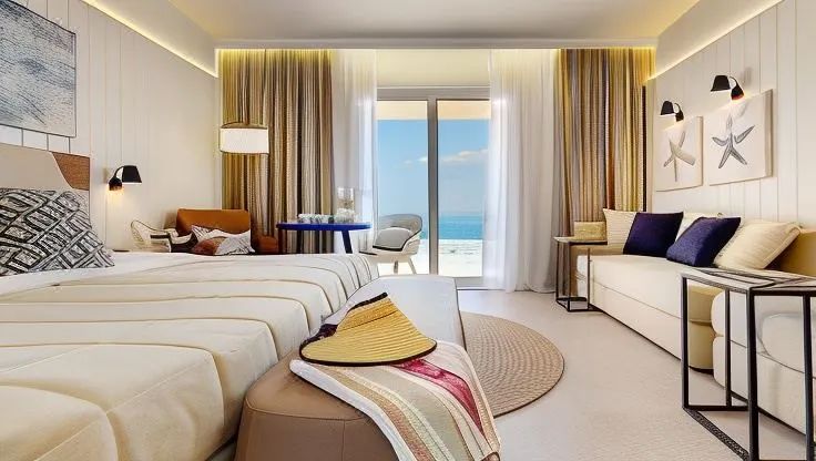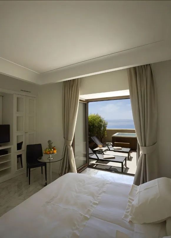 每间时尚的高级豪华客房面积宽敞,精神奢华。私人露台位于庭院建筑的底层,颓废地延伸到草地上,距离地中海拍打的海浪仅几步之遥。您可以在这里舒适地放松身心,欣赏壮丽的景色,或者在宽敞的石质浴室中尽情享受,浴室配有颓废的 Irene Forte 护肤产品,以及令人陶醉的西西里植物。当太阳最终落山时,豪华的四柱特大床正在等待着您。