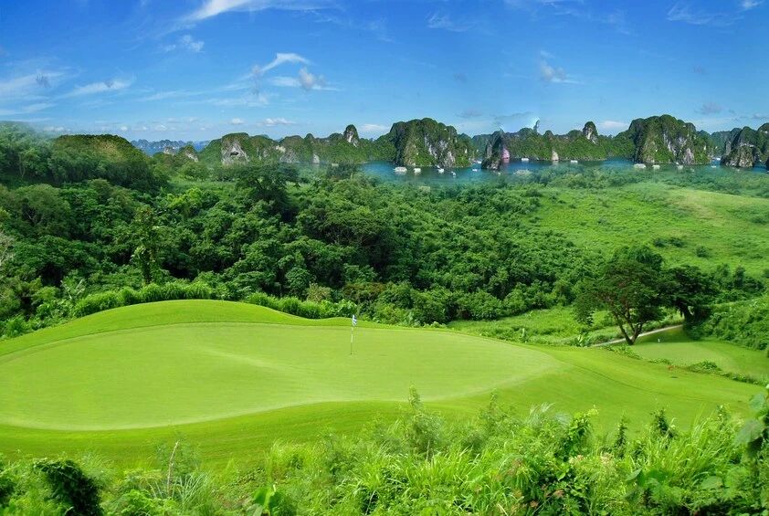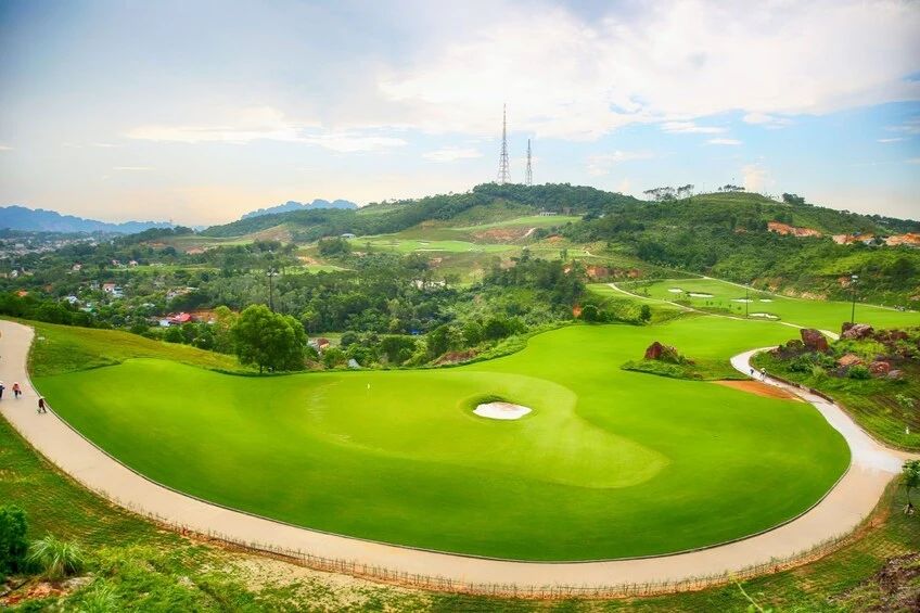 巡州高尔夫度假村——越南北部最大的18洞高尔夫球场之一。巡州高尔夫度假村隶属巡州集团,位于下龙湾的中心地带。它是广宁最大的18洞高尔夫球会之一。球会占地145公顷,俯瞰下龙湾和其他风景如画的风景。设计师利用下龙湾美丽的风景设计了这个18洞的球场,标准杆72 - 7338码。每个球洞的地形都有不同的挑战,但都面向下龙湾,使比赛更加精彩。