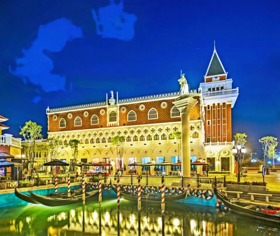 这里可以看到威尼斯的标志性建筑“钟塔”和“大运河”。所有的建筑都被装饰的非常漂亮,周围鲜花环绕,充满了欧式情调,让你有一种置身威尼斯的错觉。