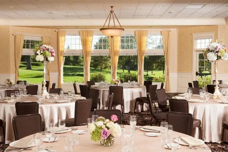 球会会所装饰精美,拥有 60,000 平方英尺的落地窗,可俯瞰高尔夫球场,外露木框架梁,宽阔的拱形天花板,雄伟的山墙屋顶线条和最先进的技术,布景婚礼和招待会、社交活动和商务会议的舞台。
