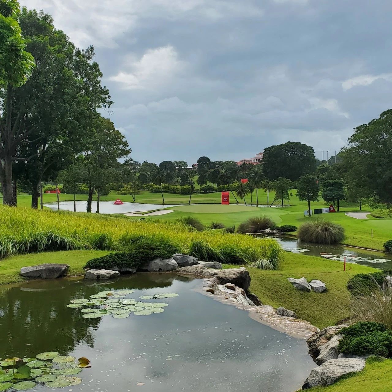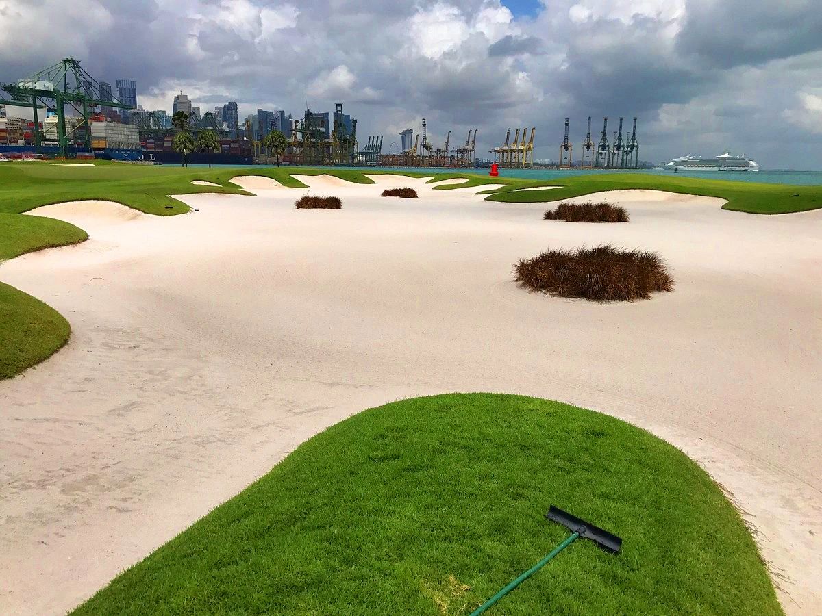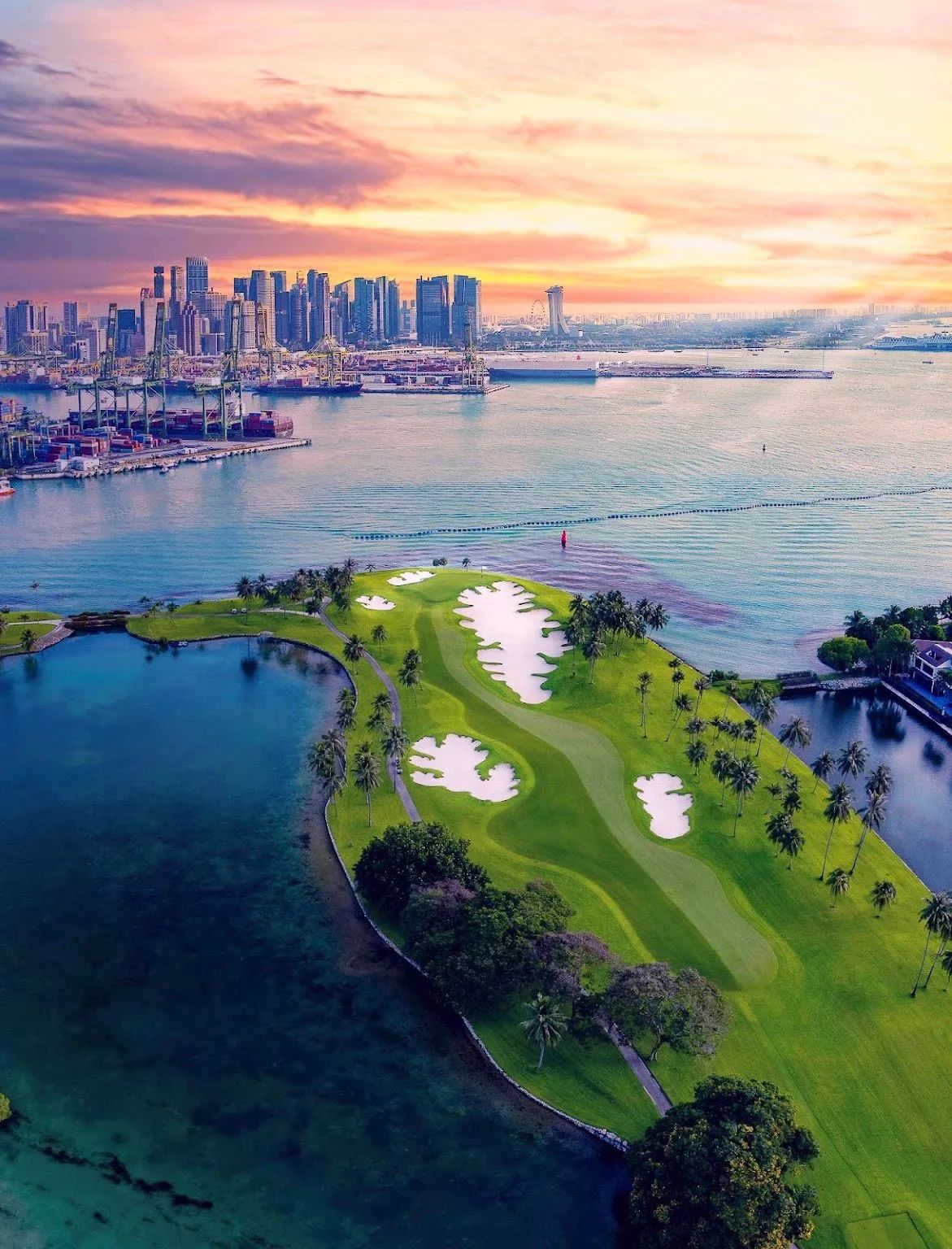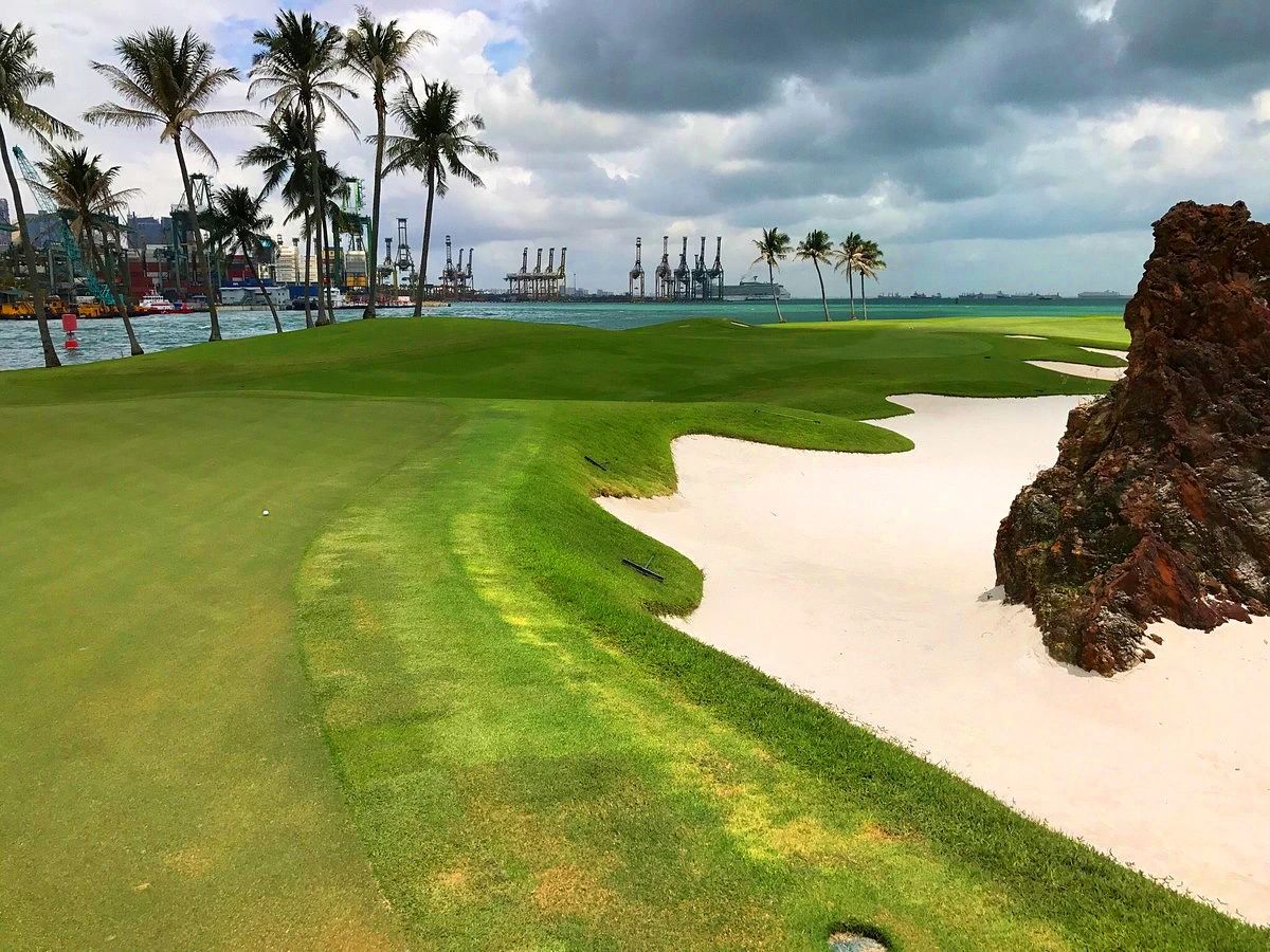 Andrw使用了标志性的土丘和起伏的地形还有两个石头岸砌成的湖泊、令人心旷神怡的景色,增强了原来Ron的设计,把新加坡海港作为打球的一个背景。
