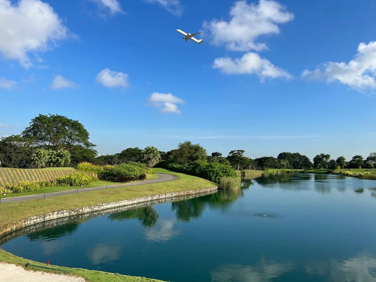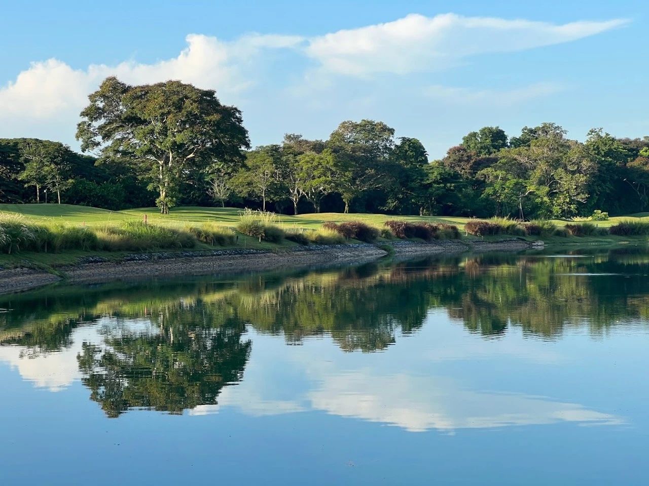 球道长而宽,草坪保养得非常好,有多达20多个水池和湖泊分布在球场各处。