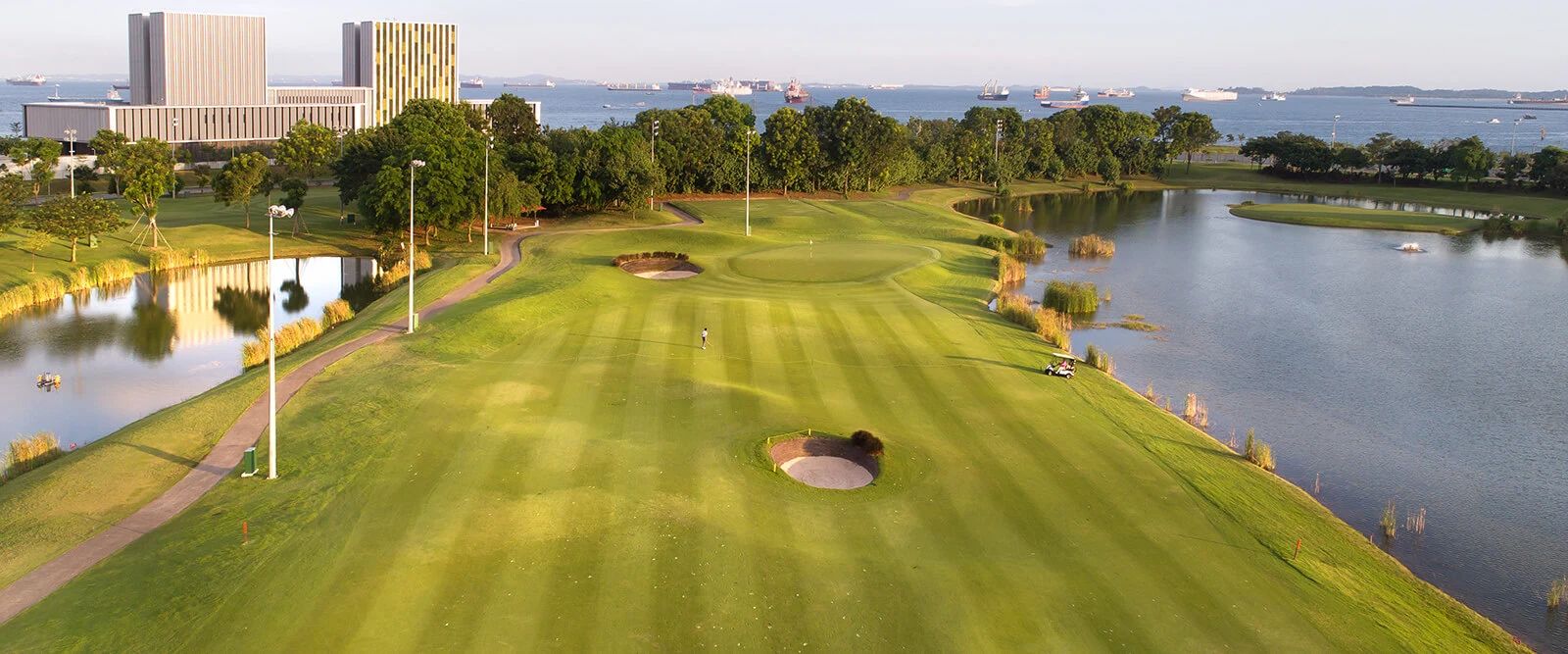 圣淘沙高尔夫俱乐部的新丹绒球场背靠新加坡海峡,风景优美,可欣赏新加坡大都市的壮丽景色。