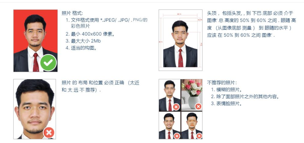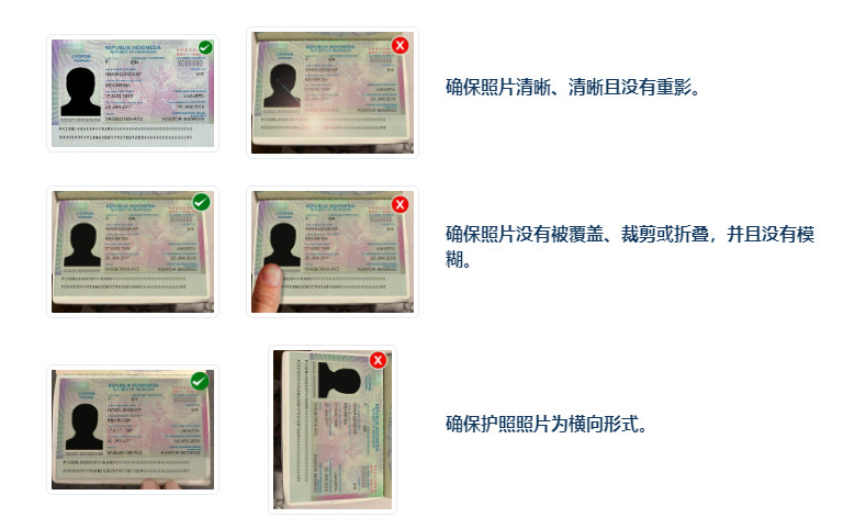 - 上传护照个人页、个人白底证件照