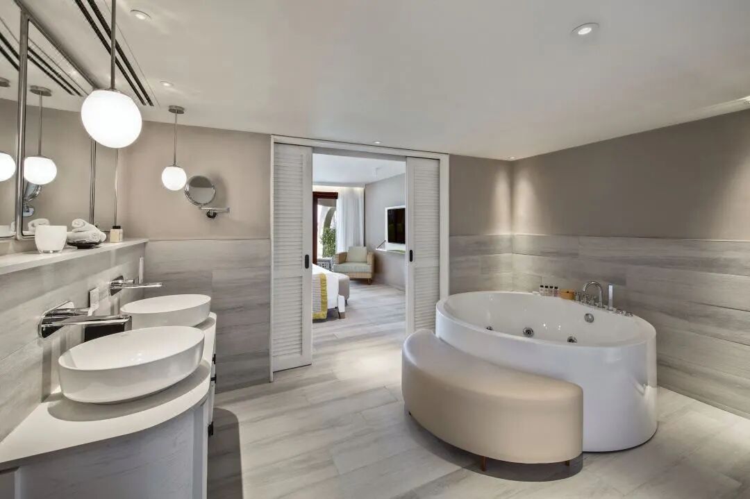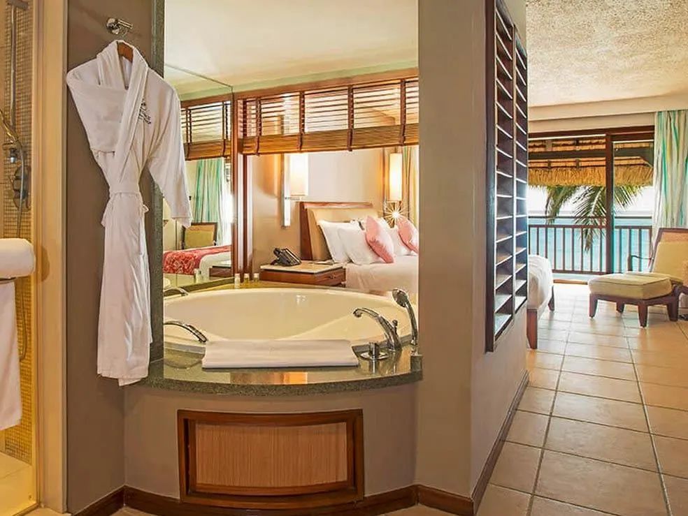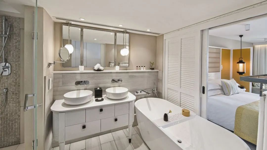 高雅的内饰,初级海滨套房坐落在洁白无瑕的沙滩上,是完美的度假之选!高层的初级海滨套房需要通过楼梯到达