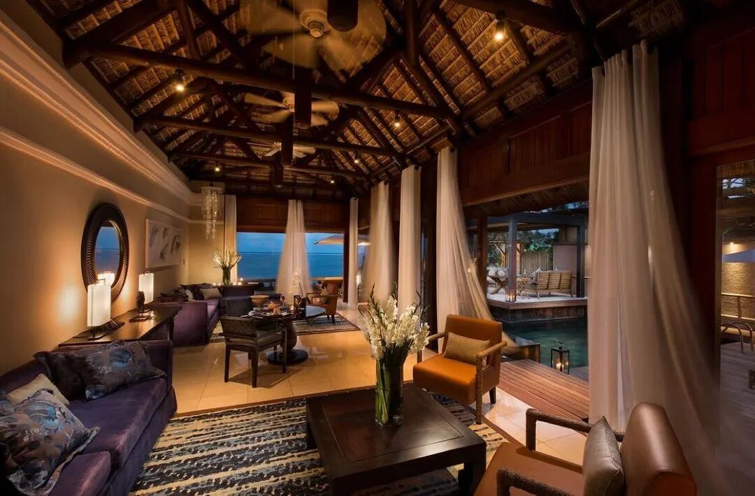 别墅坐落在热带植物丛中,面向印度洋,距离迷人的泻湖只有几步之遥,坐拥迷人海景
