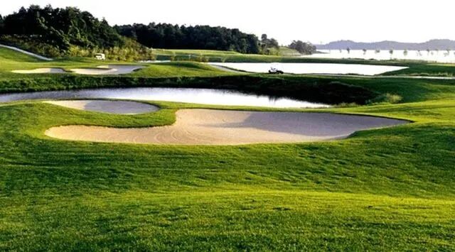构筑成远近高低各不相同的景观,精巧别致,气象万千,浑然天成,在增加挑战性的同时也增加了打球的趣味性。