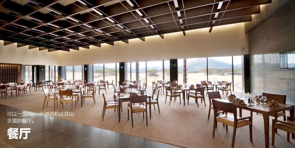 餐厅可欣赏到 BAYSIDE 湖畔球场和达勒姆山的全景,供应各种丰盛的菜肴,包括韩国料理、中国料理和现代料理。