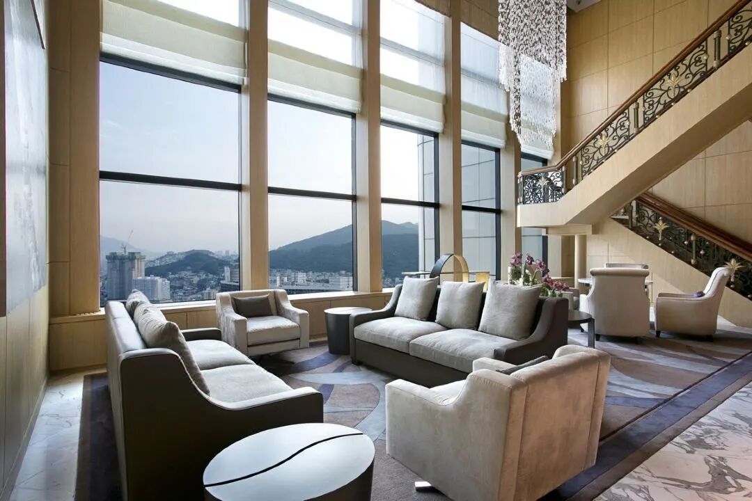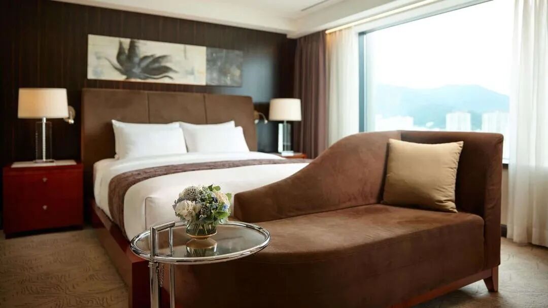 这家酒店虽然号称是“釜山的最大酒店”,一共有650间客房,但从客房到公区,还是保持着精致格调,客房设计虽然不是那种很新潮的样式,但非常优雅经典。超大落地玻璃窗、舒适的沙发区,空间十分敞阔!