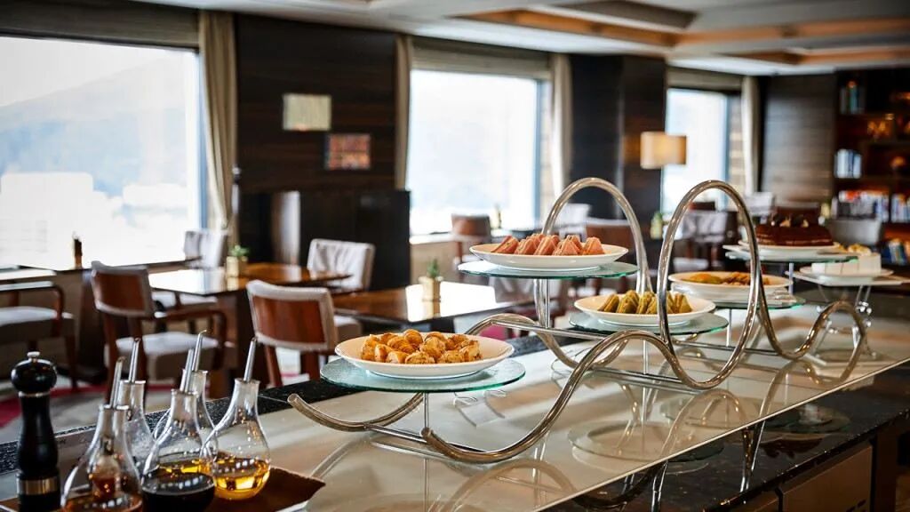 塞纳河(La Seine)餐厅于2017年5月重装开业,是酒店的时尚自助餐厅,可以同时品尝全世界170多种山珍海味。不仅有招牌菜——烤羊排、佛跳墙、烟熏三文鱼,还有清蒸雪蟹、土耳其式比萨浪马军、松露宽面条等新菜品。