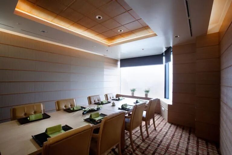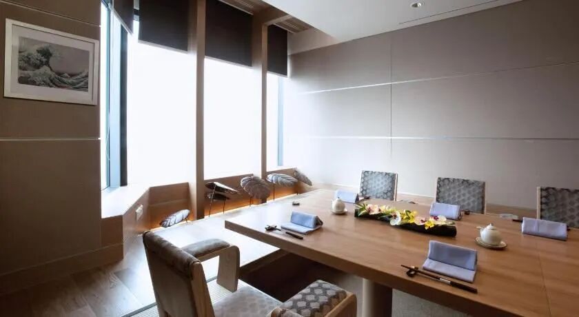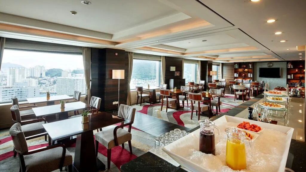 如果想享受比较私密精致的用餐体验,推荐去桃林餐厅,位于酒店顶层43层,空间宽敞明亮,窗外一侧可俯瞰釜山市民公园和白杨山,另一侧可俯瞰釜山港大桥。