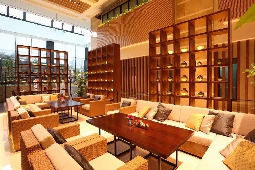 现代化的室内装饰和大型木雕营造出宏伟的氛围。
