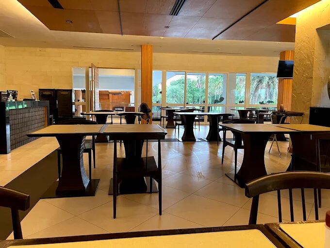 餐厅拥有宽敞舒适的座椅,俯瞰着18号球道,环境宜人,供应各式菜肴,其中伊桑套餐尤为特色。